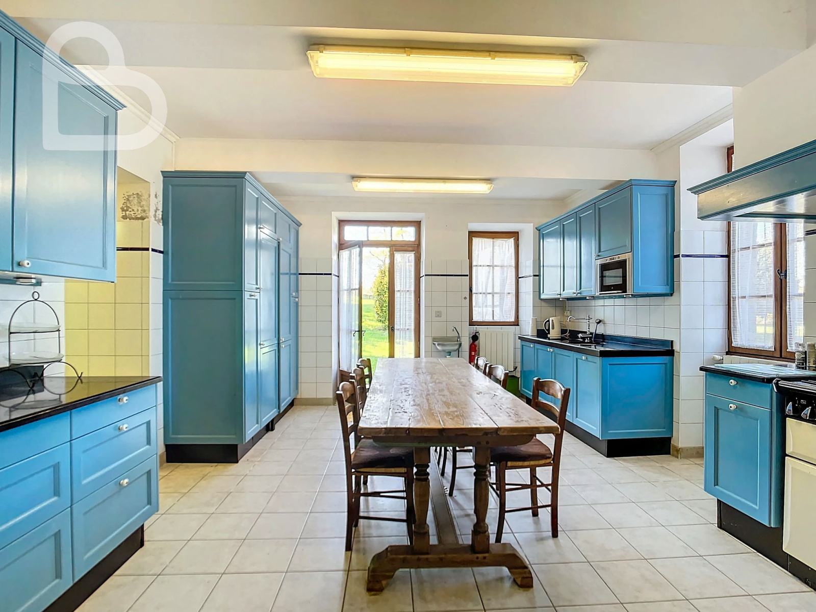 La cuisine est équipée d'une cuisinière Falcon à six feux et deux fours.