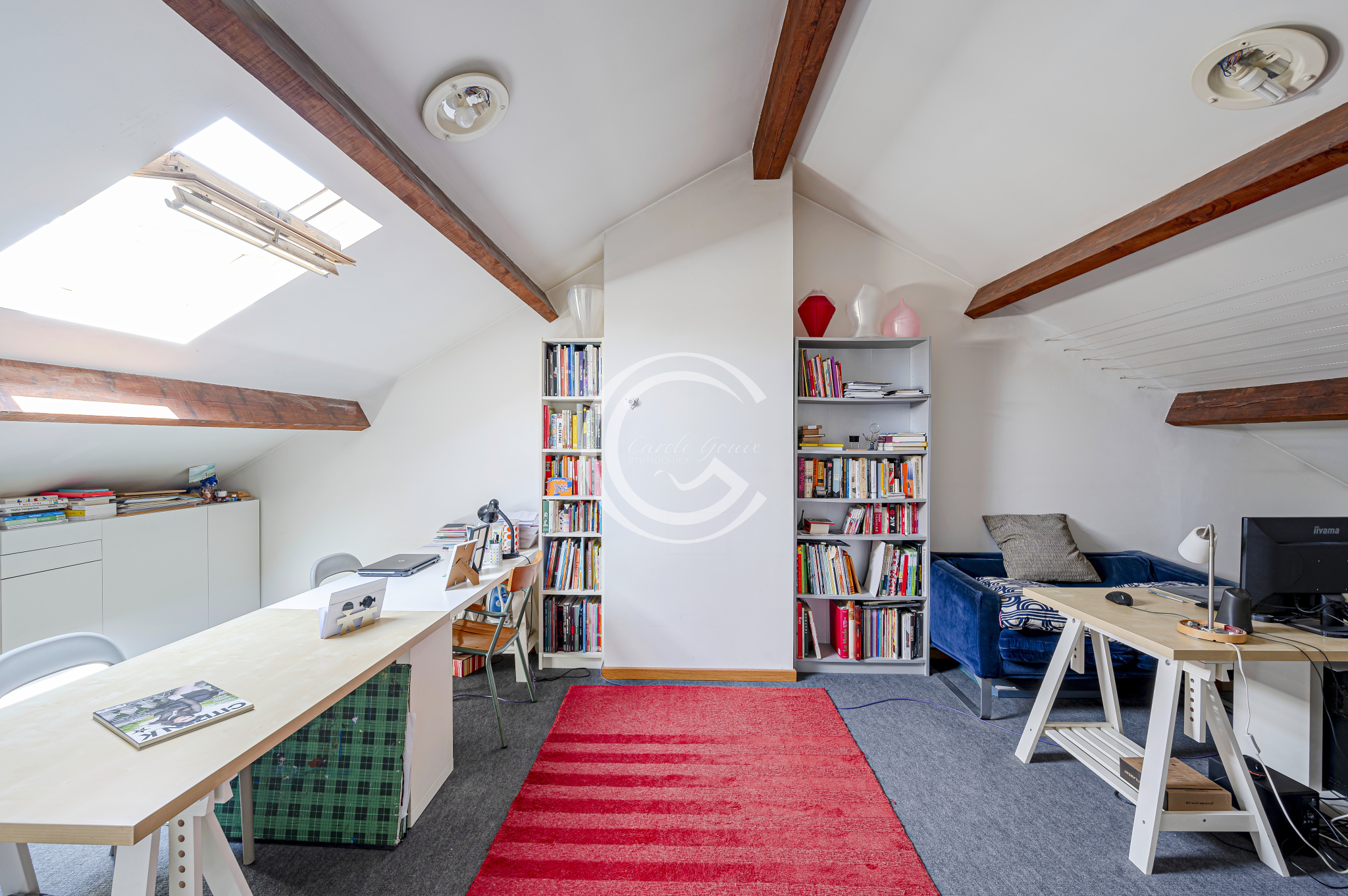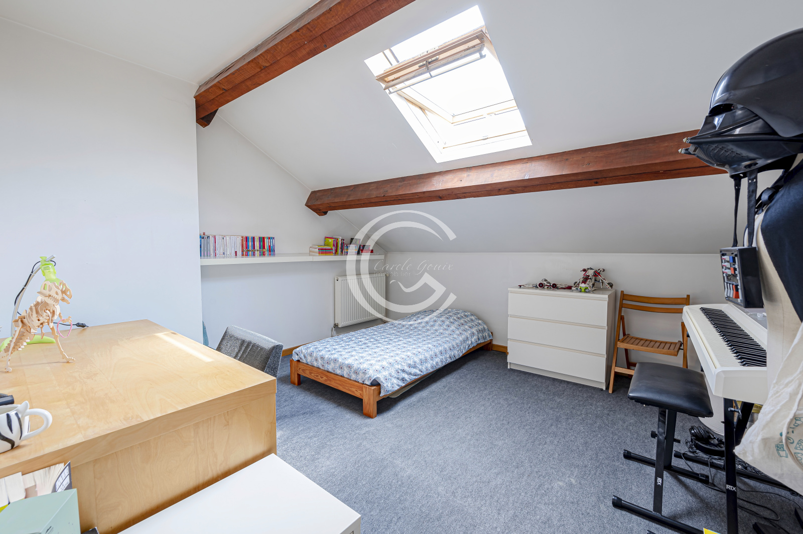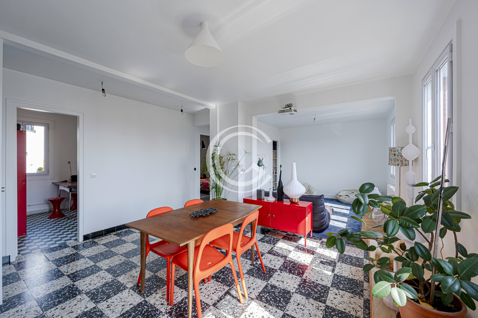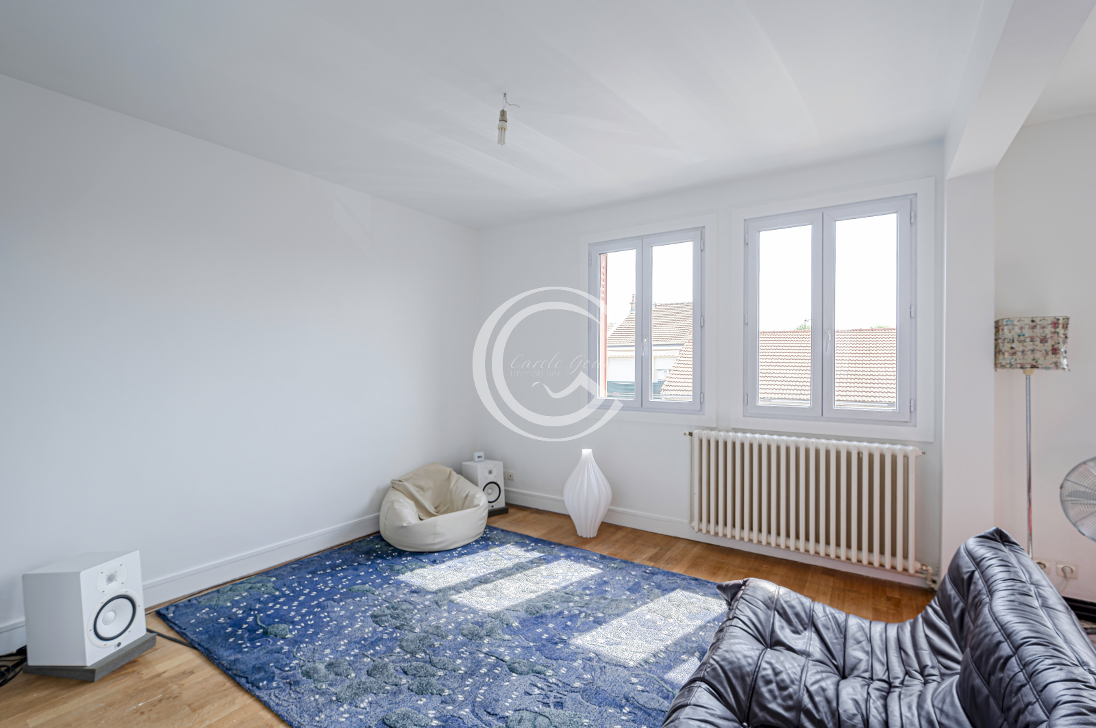 * Disponibilité et visite 7/7 * Au centre de multiples possibilités de transports (10 min à pied du métro Mairie de Montreuil, à 2 pas du futur T1, 10 min à pied de la future station Montreuil Hôpital (métro Ligne 11), à 2 stations T1 du métro Carnot (Ligne 11 - direct République et Châtelet !), voici un appartement familial sans travaux à prévoir, avec une chambre au 1er niveau et 3 à 4 chambres au dernier étage. Dans une ancienne maison des années 60 divisée en 3 lots de copropriété, au 2è et 3è et dernier étage, ce duplex atypique offre de beaux volumes et de nombreuses ouvertures en double exposition Est et Ouest. D'une surface au sol de 126m2 (101m2 Carrez), le plan est optimisé, sans perte de place et agréable à vivre. Le double séjour de près de 37m2 donne sur une cuisine de 9m2. Possibilité d'agrémenter d'un poêle au centre de l'appartement. A ce niveau également, une chambre, une salle de bain et des WC séparés. Au dernier étage, comme une maison, 3 chambres (possibilité de 4) sous les combles, une salle d'eau avec WC et un grand débarras. Nombreux rangements sur mesure. Parquet en chêne et... carrelage en Terrazzo ! Un espace extérieur offre un espace de jeux, de détente ou même de jardinage aux 3 copropriétaires (syndic bénévole).