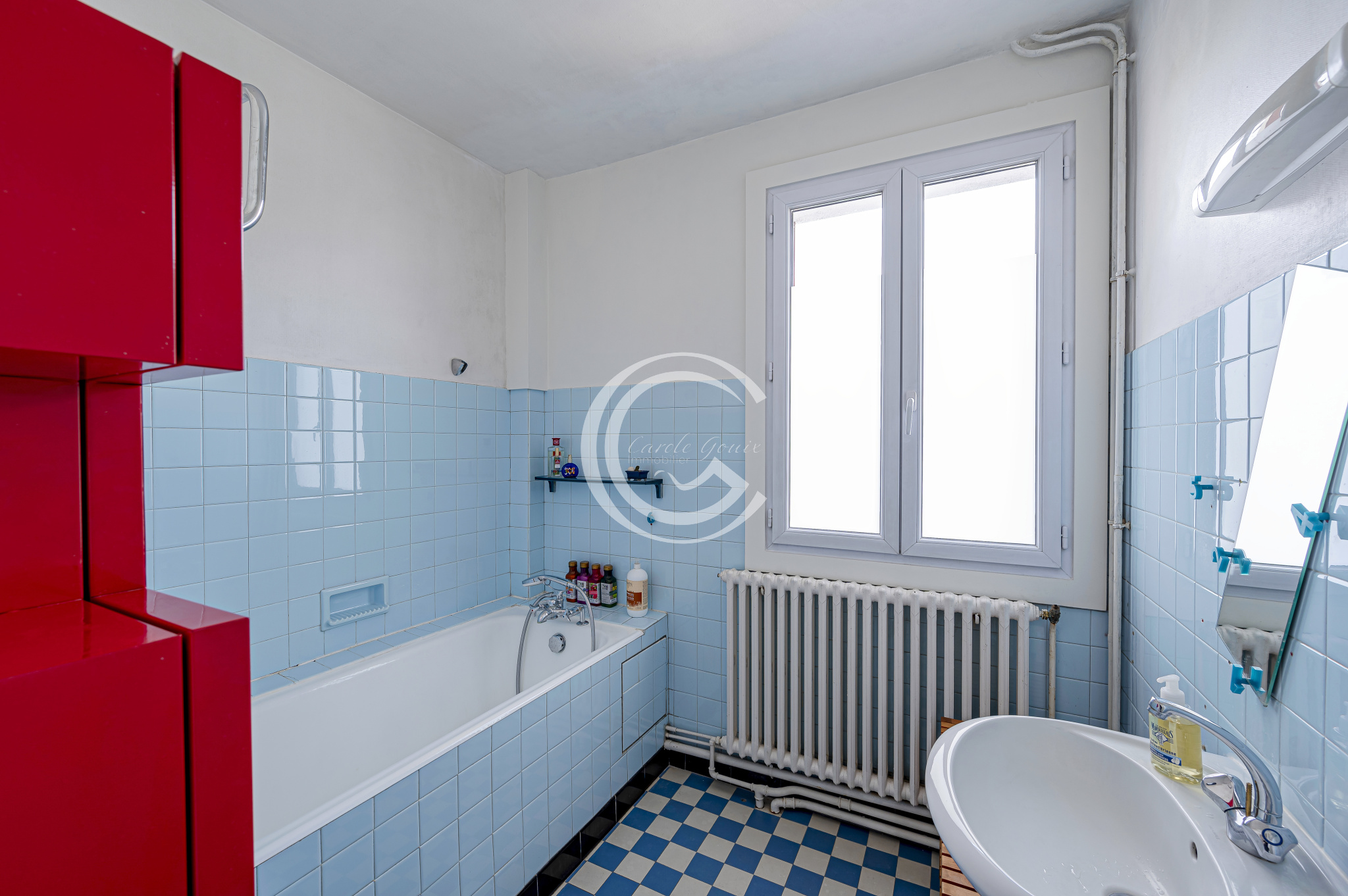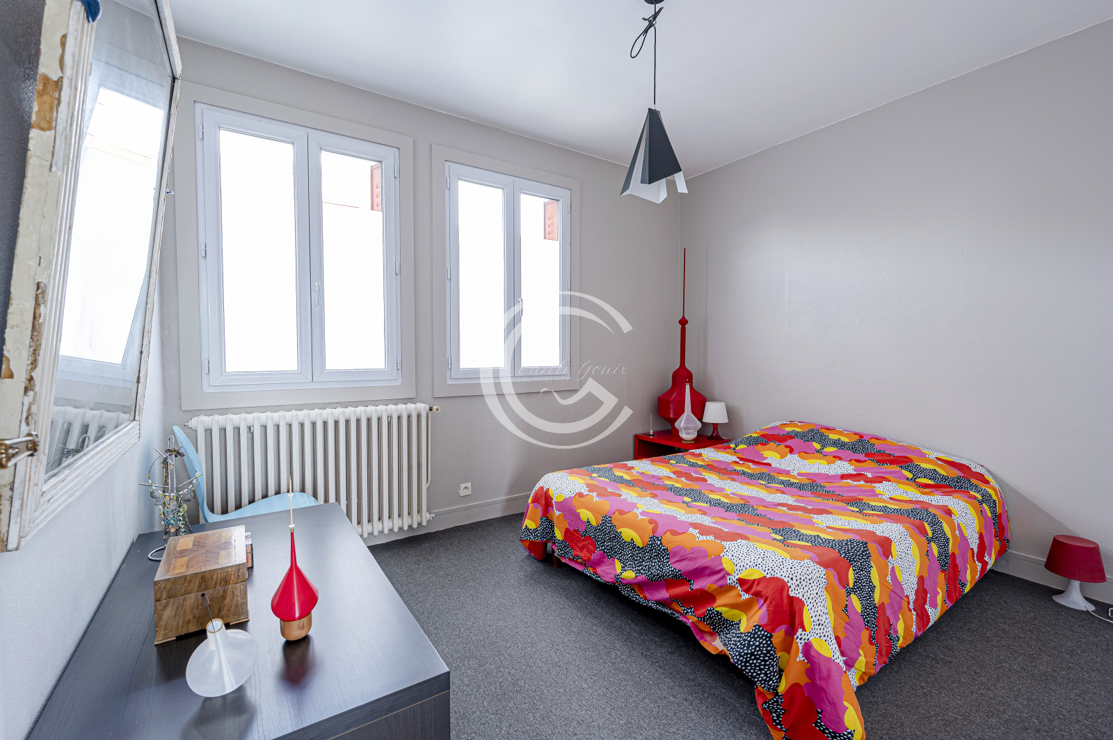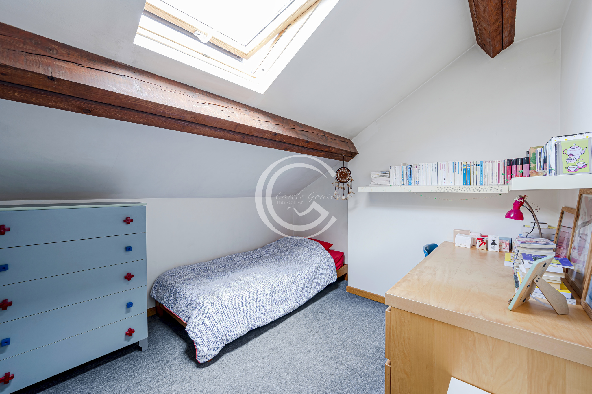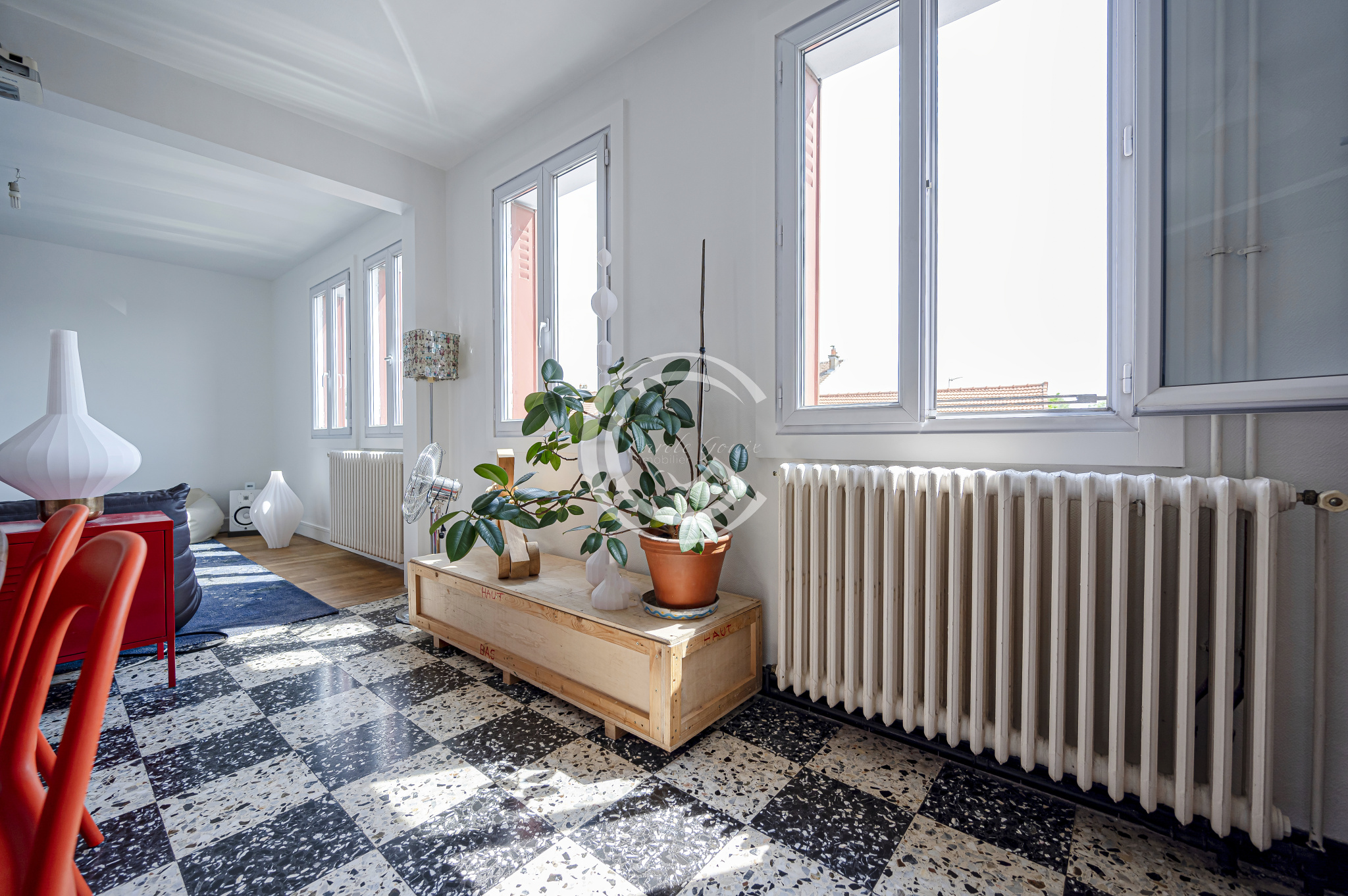 * Disponibilité et visite 7/7 * Au centre de multiples possibilités de transports (10 min à pied du métro Mairie de Montreuil, à 2 pas du futur T1, 10 min à pied de la future station Montreuil Hôpital (métro Ligne 11), à 2 stations T1 du métro Carnot (Ligne 11 - direct République et Châtelet !), voici un appartement familial sans travaux à prévoir, avec une chambre au 1er niveau et 3 à 4 chambres au dernier étage. Dans une ancienne maison des années 60 divisée en 3 lots de copropriété, au 2è et 3è et dernier étage, ce duplex atypique offre de beaux volumes et de nombreuses ouvertures en double exposition Est et Ouest. D'une surface au sol de 126m2 (101m2 Carrez), le plan est optimisé, sans perte de place et agréable à vivre. Le double séjour de près de 37m2 donne sur une cuisine de 9m2. Possibilité d'agrémenter d'un poêle au centre de l'appartement. A ce niveau également, une chambre, une salle de bain et des WC séparés. Au dernier étage, comme une maison, 3 chambres (possibilité de 4) sous les combles, une salle d'eau avec WC et un grand débarras. Nombreux rangements sur mesure. Parquet en chêne et... carrelage en Terrazzo ! Un espace extérieur offre un espace de jeux, de détente ou même de jardinage aux 3 copropriétaires (syndic bénévole).