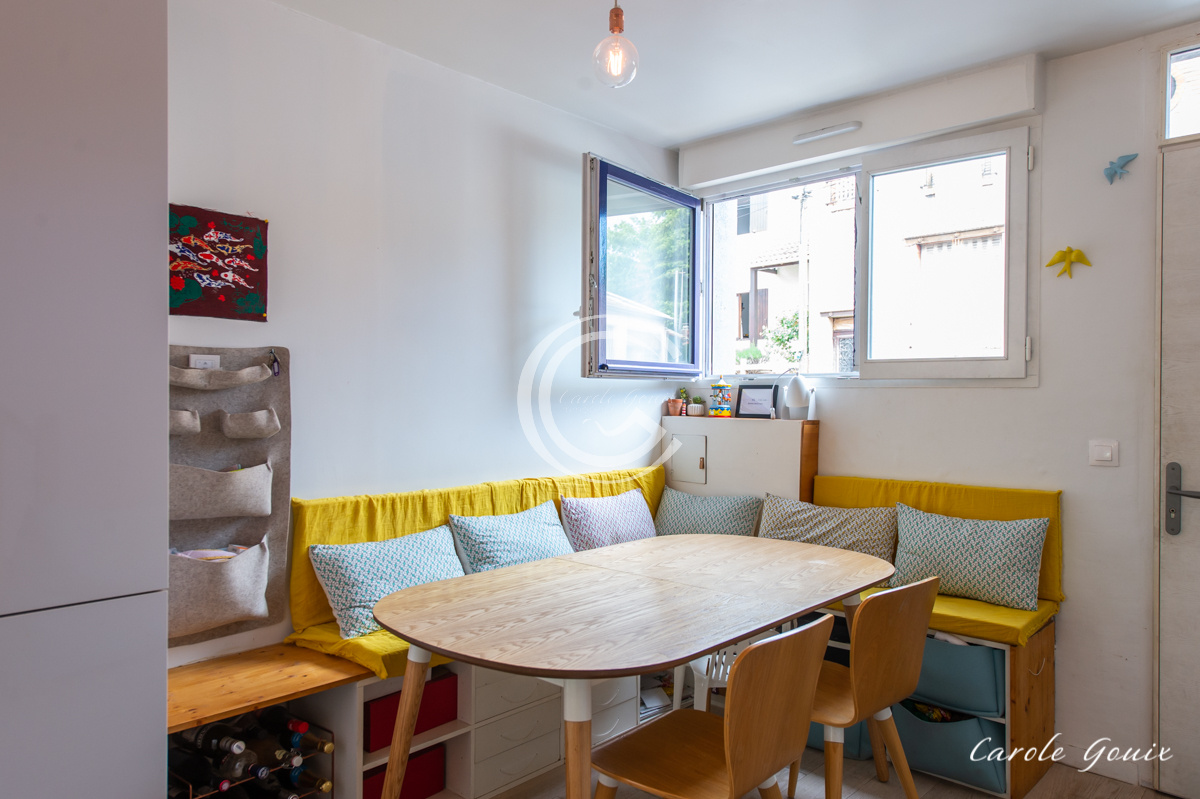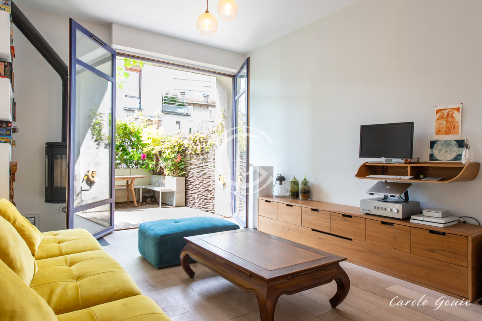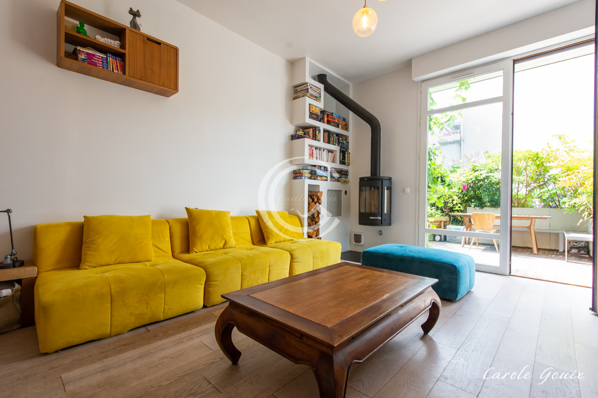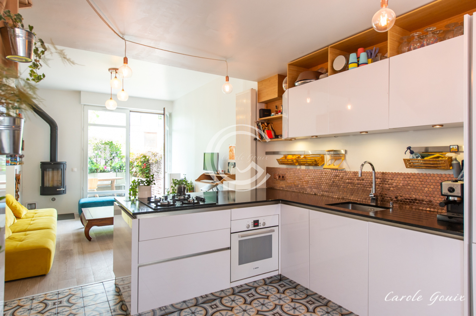 Cette maison d'architecte aux volumes atypiques a tout pour vous séduire ! Situation idéale en hyper centre, proche des métros, des commerces et du parc des Guilands, cette maison sur 2 niveaux a été entièrement rénovée en 2015. Elle dispose actuellement de 2 chambres mais une 3ème est envisageable en prenant sur une partie dont la hauteur sous plafond est supérieure à 5m. Au rez-de-chaussée, la pièce de vie de 38m2 en double expostion est composée d'une cuisine ouverte haut de gamme, un coin dinatoire et un salon ensoleillé donnant sur la terrasse végétalisée, plein Sud, au calme. A l'étage, le palier dessert une buanderie, 2 chambres aux volumes généreux et une salle de bain / WC. Le chauffage est au gaz (chaudière Frisquet), les fenêtres sont en bois double vitrage, parquet, carrelages récents. Un poêle à bois est un agrément supplémentaire pour combler vos soirées d'hiver. Près de 71m2 Carrez, 81 m2 en surface pondérée. Une place de parking est en option.