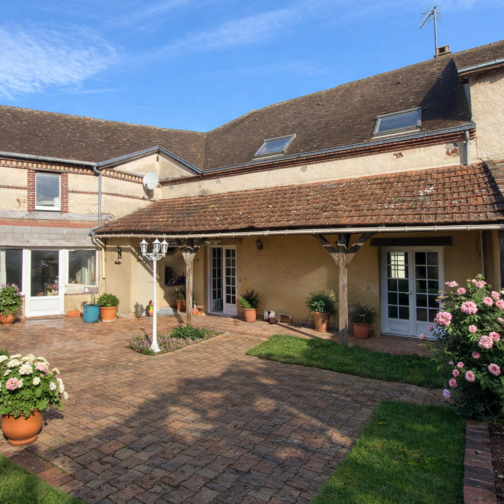 Ferreira Kevin Immobilier vous propose dans ce charmant bourg où tout se fait à pied — école, boulangerie, maison de santé, commerces — découvrez une maison de caractère au fort potentiel. Développant environ 160 m² habitables, cette maison mitoyenne avec vie de plain-pied séduit par ses volumes généreux, son charme de l’ancien et son atmosphère chaleureuse, sublimée par de belles poutres apparentes. Le séjour traversant, baigné de lumière naturelle, invite aux moments de partage. La cheminée à foyer fermé promet de belles soirées d’hiver, tandis que la terrasse couverte prolonge agréablement les repas d’été, à l’abri du soleil comme des regards. La cuisine, la chambre et la salle de bain de plain-pied, les toilettes séparées ainsi que la buanderie offrent un confort de vie quotidien, pratique et fonctionnel. À l’étage, une mezzanine dessert 3 chambres ainsi qu’un espace à aménager selon vos envies. Au-dessus du garage attenant d’environ 29 m², un volume supplémentaire laisse libre cours à l’imagination : studio indépendant, atelier, bureau ou suite parentale. Quelques travaux de rafraîchissement permettront de révéler tout le potentiel de cette maison à la structure saine et au charme indéniable — une base idéale pour créer un lieu de vie à votre image. À l’extérieur, le calme s’installe naturellement : cour intérieure, terrasse, cave, garage… Autant d’espaces propices à la détente, aux moments conviviaux ou simplement au plaisir de profiter du quotidien. Prestations techniques : Fibre optique Pompe à chaleur air/air Eau chaude sanitaire solaire Une maison de bourg authentique, alliant cachet, confort et potentiel.
