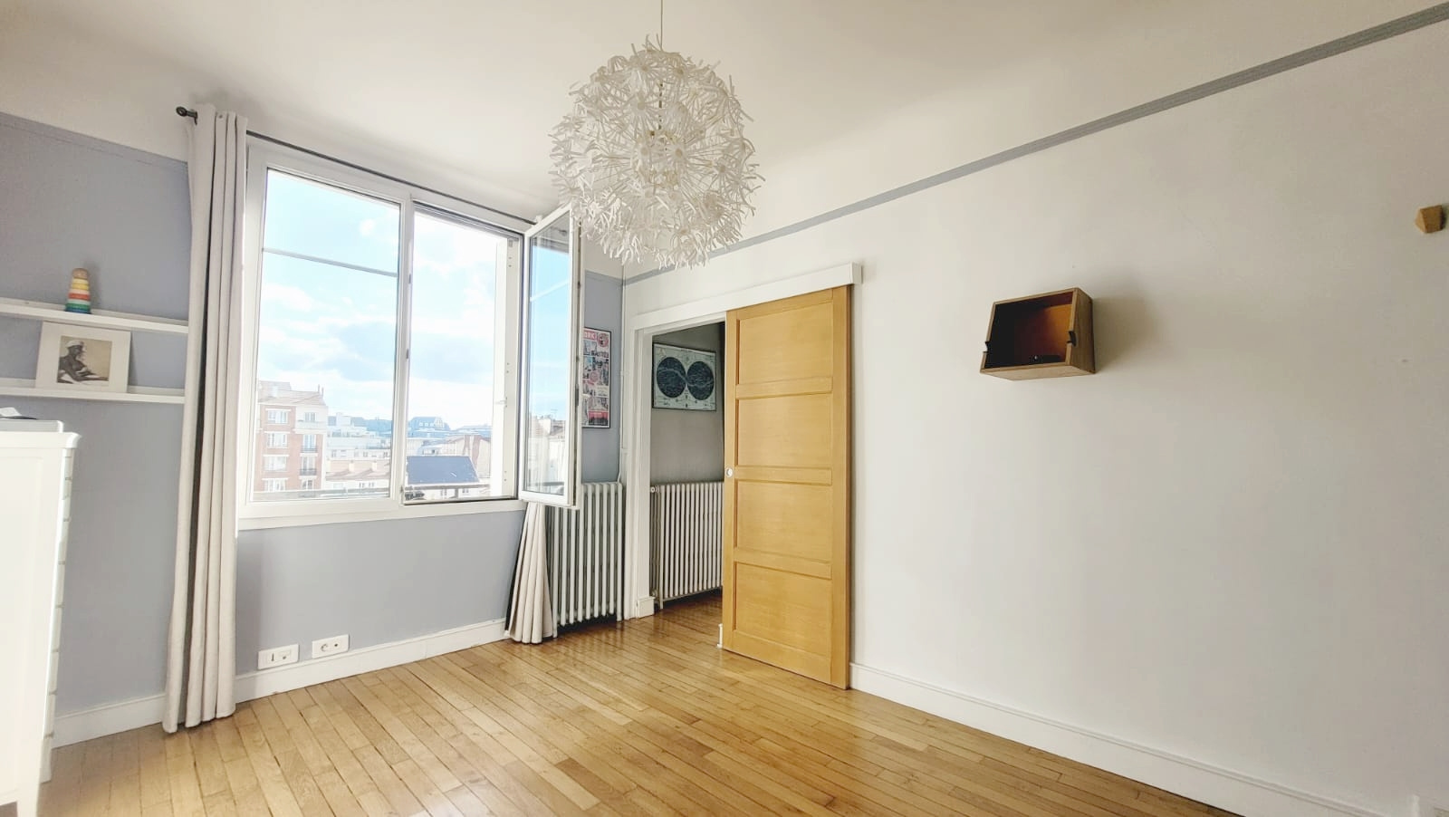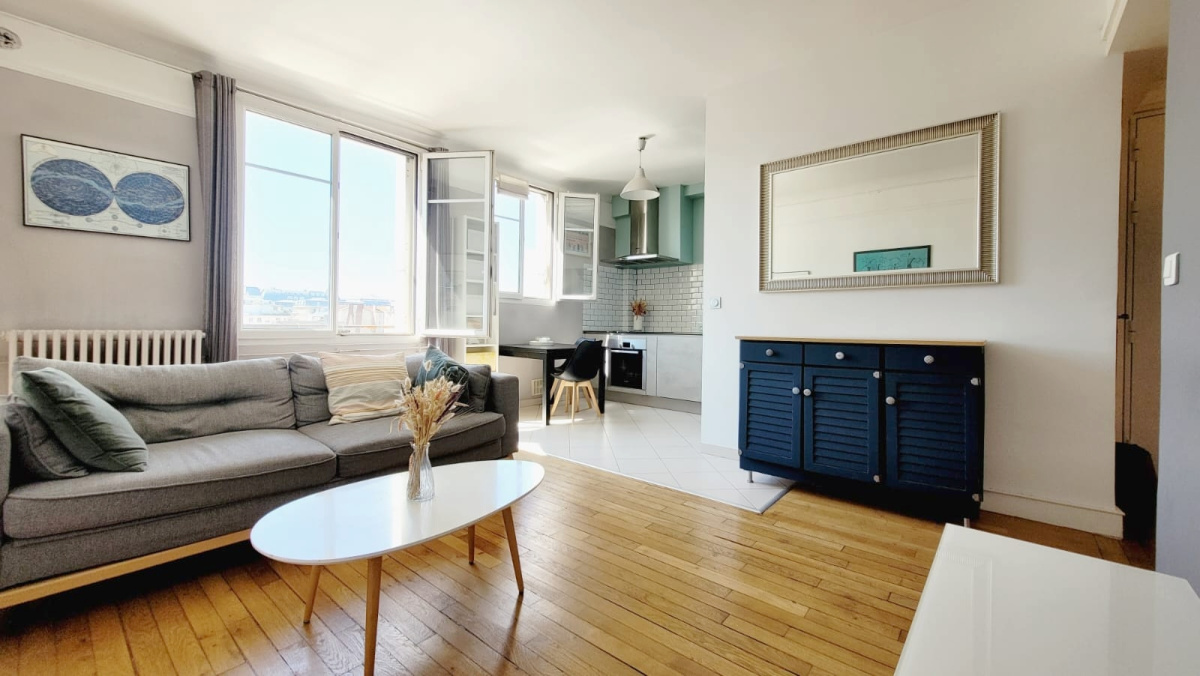 Quartier des Ecrivains, à deux pas des commerces et de la vie animée de l'avenue de la République, et à 5 minutes à pied du métro Ligne 4. Au dernier étage d'une résidence bien entretenue avec gardien, venez découvrir ce charmant deux pièces lumineux, au calme absolu et en parfait état. Entièrement parqueté, il se compose d'une entrée avec rangement (sur mesure), d'un séjour exposé sud avec cuisine américaine équipée et aménagée, d'une grande chambre avec un double placard penderie, d'une salle de douche à l'italienne, et de toilettes séparés avec un coin buanderie. Double vitrage, parquet massif. Une grande cave cimentée de 6m2 complète ce bien. Chauffage collectif au gaz et eau chaude individuelle au gaz (chauffe eau de 2017). Charges de coprorpiété incluant le chauffage : 260 € / mois. Racks à vélos dans la cour pavée et végétalisée de la copropriété.
