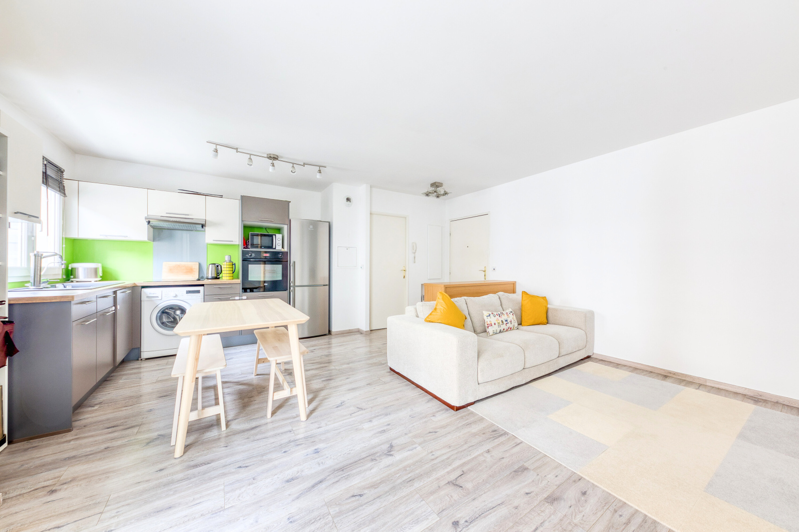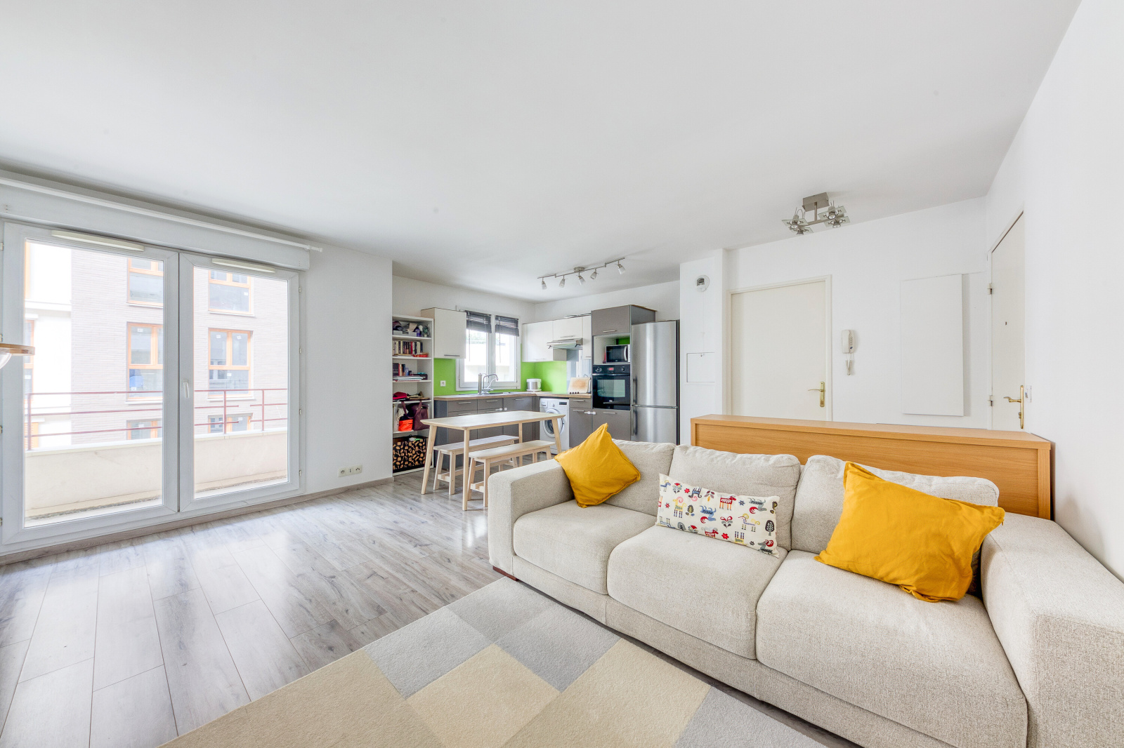 Expertimo - Marie-Eve Coulomb vous présente : à proximité du métro Ligne 4, au 2ème étage d'une copropriété de 2002 (DPE C / GES A) bien entretenue, ce bel appartement lumineux se compose d'une grand séjour donnant sur un balcon de 9,60m2, d'une cuisine ouverte entièrement équipée, de deux chambres avec placards penderies donnant aussi sur le balcon, d'un grand placard de rangement jouxtant l'entrée, d'une salle de bain et de toilettes séparés. Une cave complète ce bien. Deux places de parking au sous-sol de la résidence sont disponibles en sus. Chauffage électrique individuel. Charges de copropriété : 132 euros / mois. Taxe foncière : 961 euros. Local à vélos et espaces verts ouverts aux résidents. Information d'affichage énergétique sur ce bien : classe ENERGIE C et classe CLIMAT A. La présente annonce immobilière vise 1 lot principal situé dans une copropriété ne faisant l'objet d'aucune procédure en cours et a été rédigée sous la responsabilité éditoriale de Mme Marie-Eve COULOMB, mandataire indépendante en immobilier, immatriculée au registre du commerce sous le numéro 883507998.