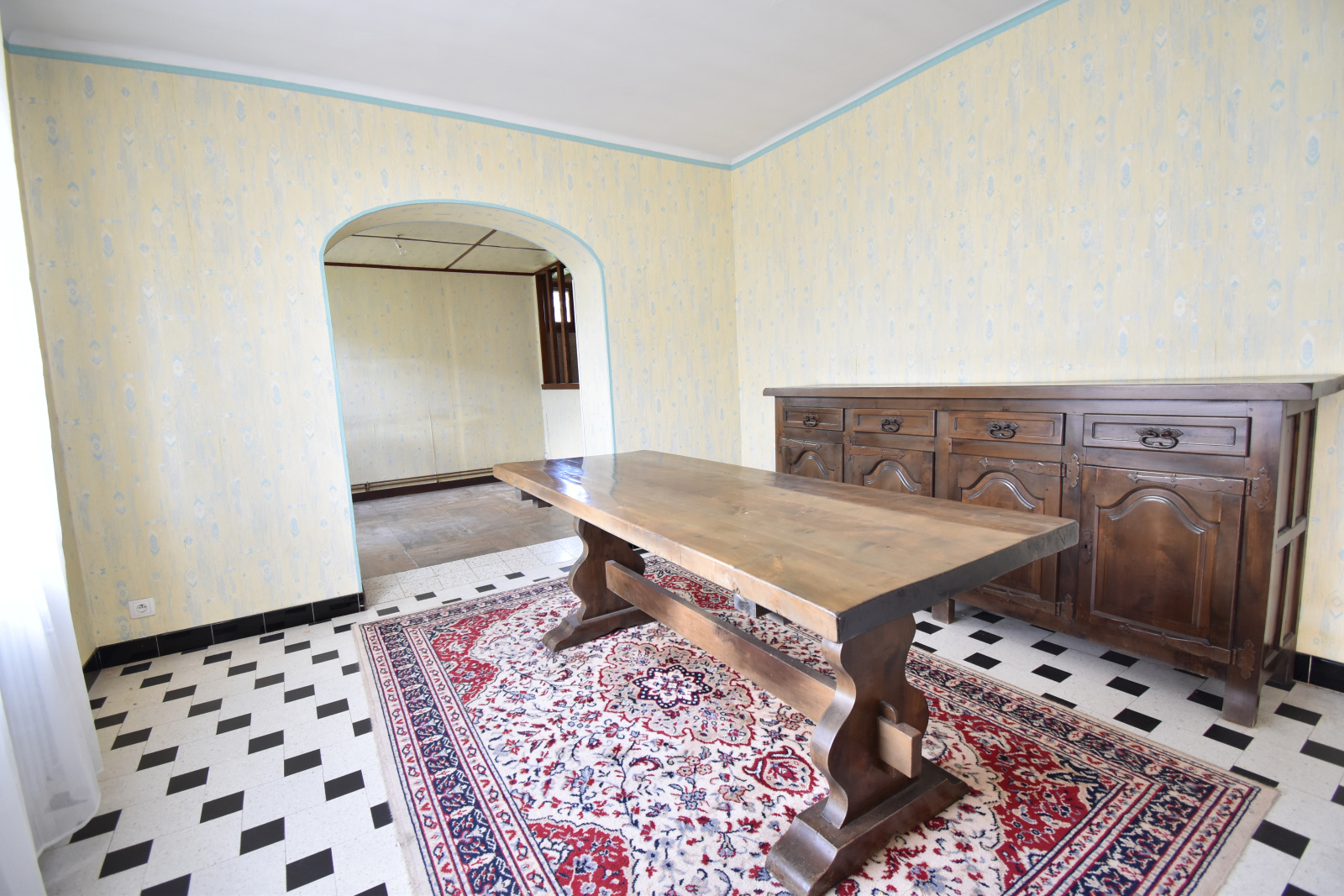 Une maison de plain-pied située en cœur de village, proche des écoles et des commerces. Elle est composée de :