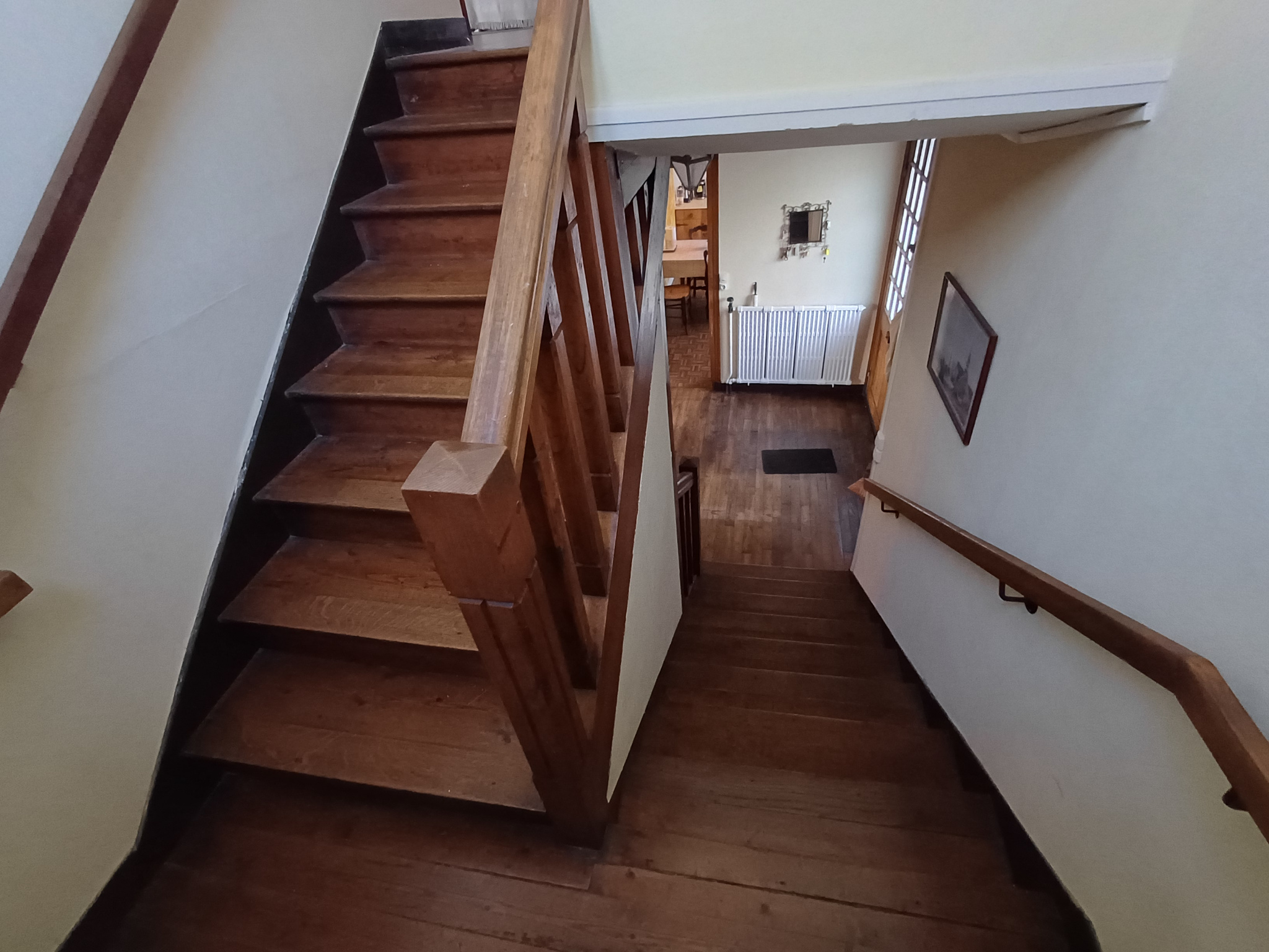 A l'étage, palier, quatre chambres dont une avec balcon, une salle d'eau avec wc.