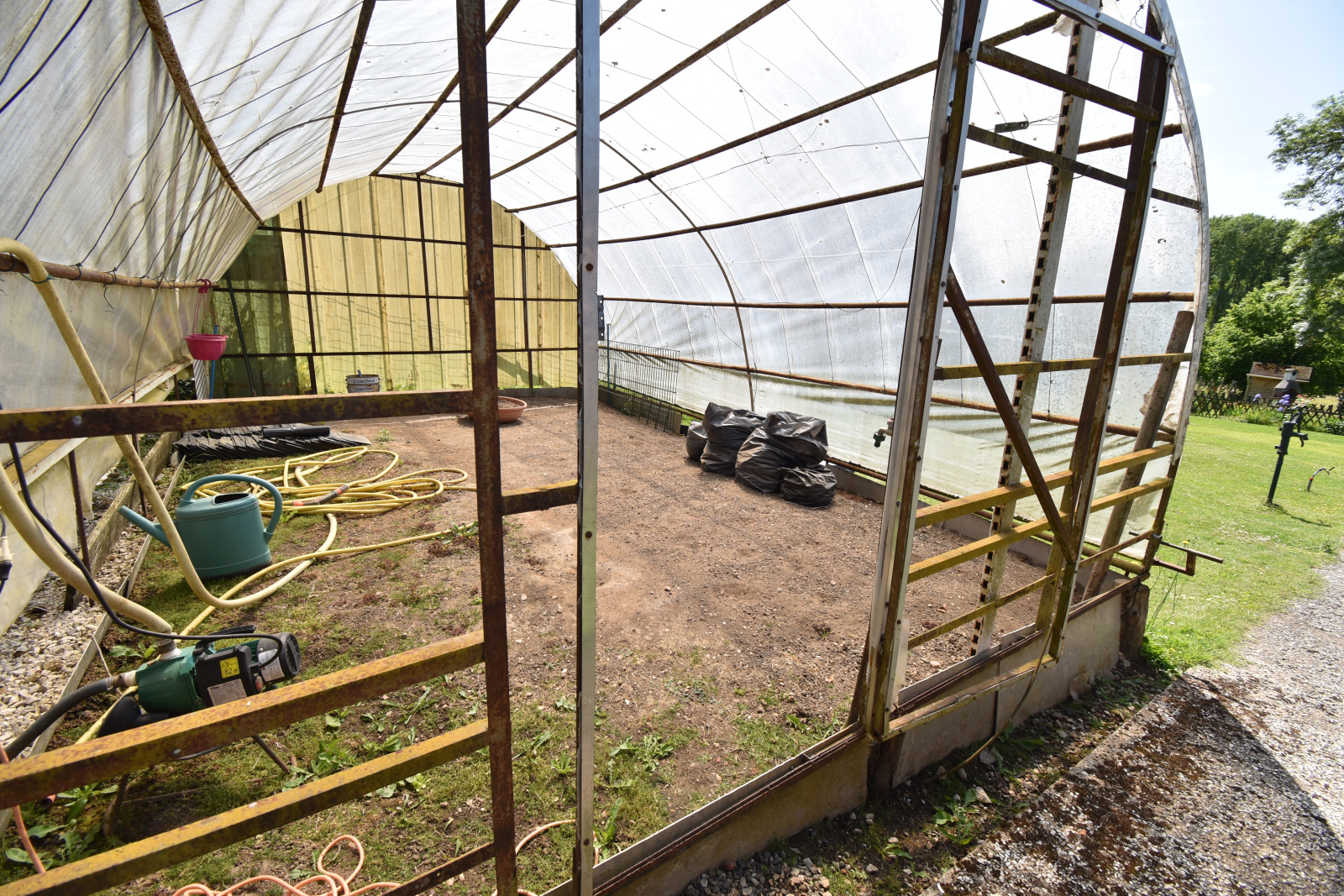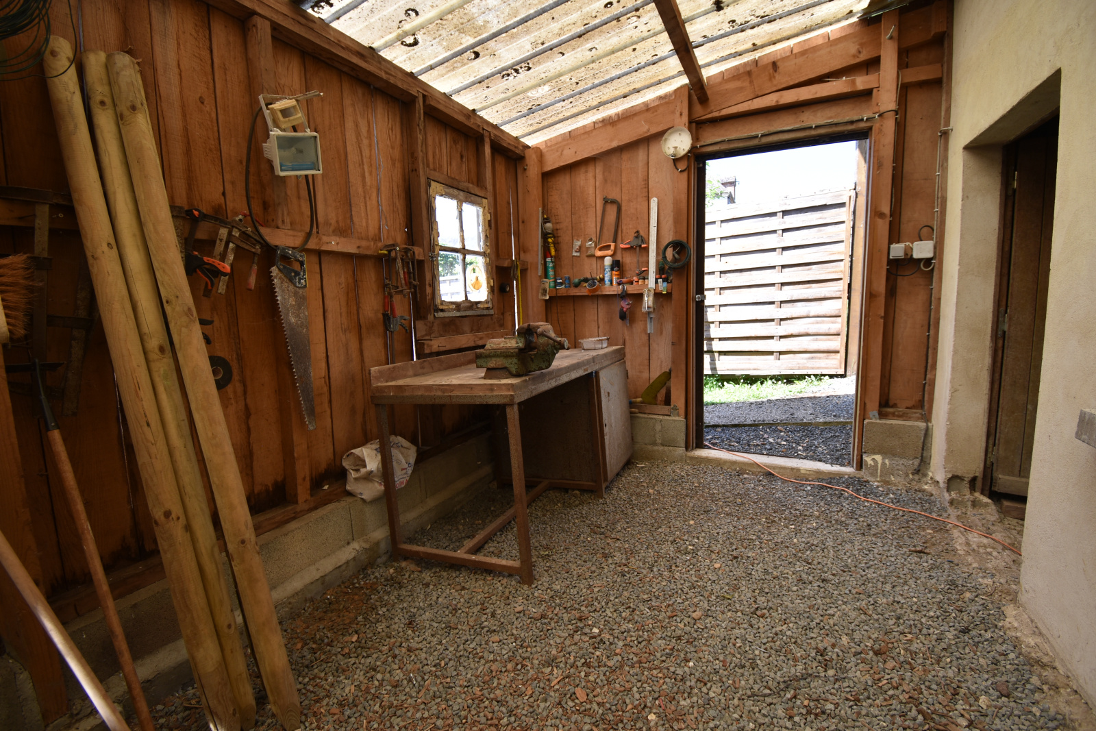 Sur une autre parcelle se trouvent deux garages avec parking, un atelier, une serre suivi d’un parc arboré et clos viabilisé sur lequel se situe un chalet bois équipé.