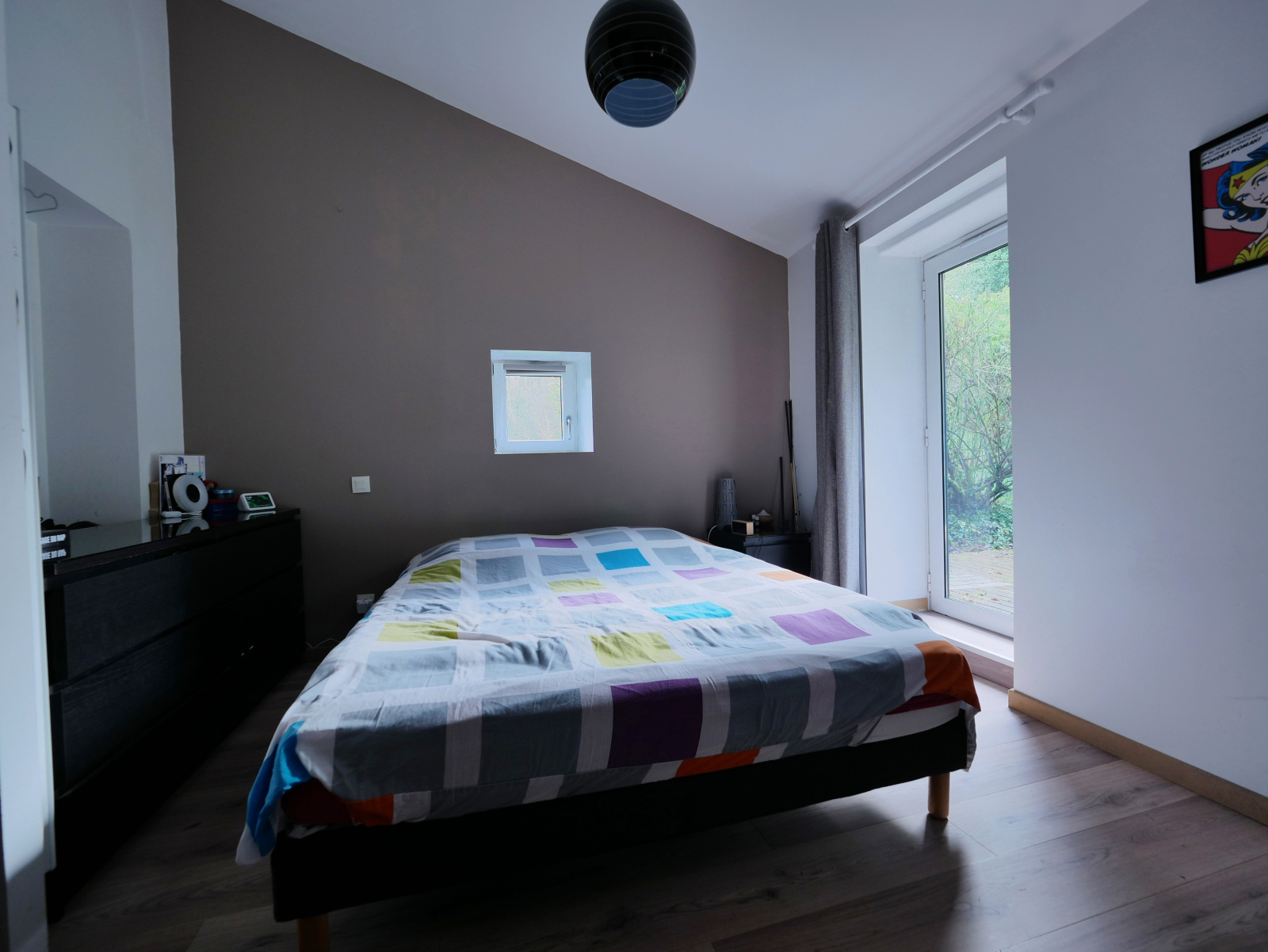 pièce de vie 27.8m², buanderie 1.75, chambre 18m², sde 5m² carrelage, parquet