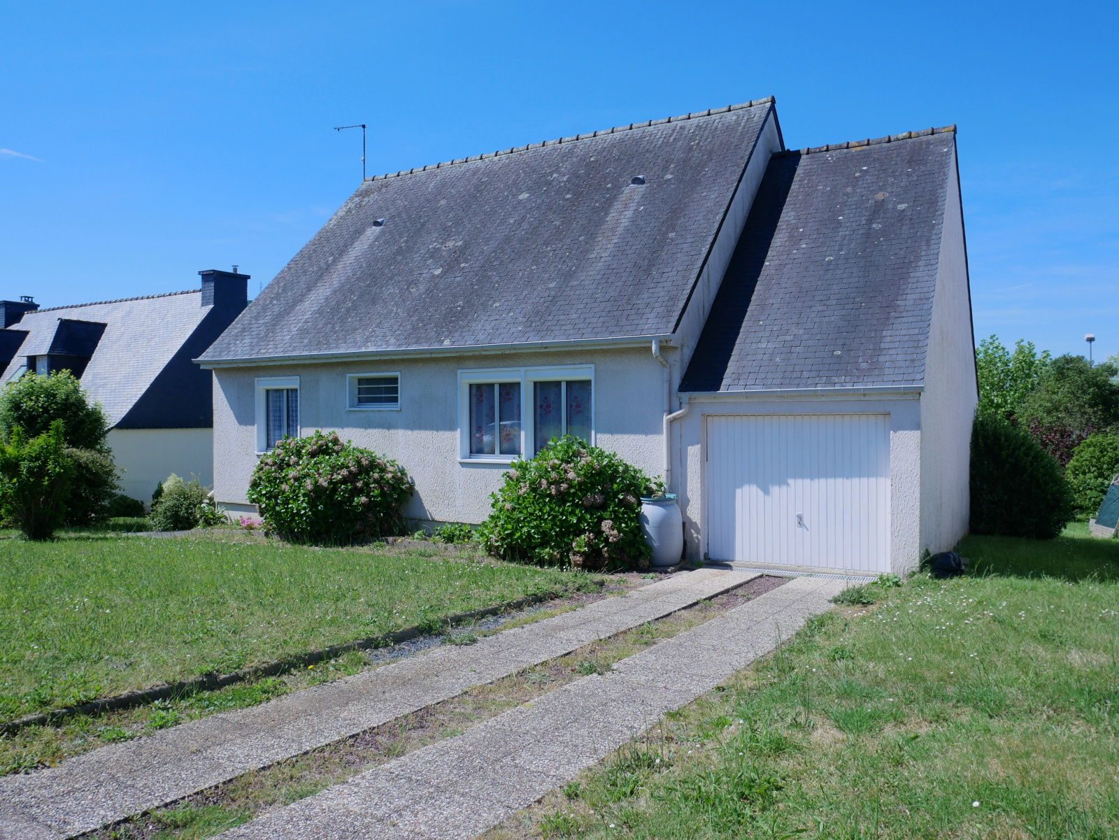 Elle offre une cuisine équipée aménagée, un séjour, deux chambres. Un garage attenant avec grenier au dessus. Terrain de 753 m2. Possibilité d’agrandissement. A découvrir rapidement !!!!