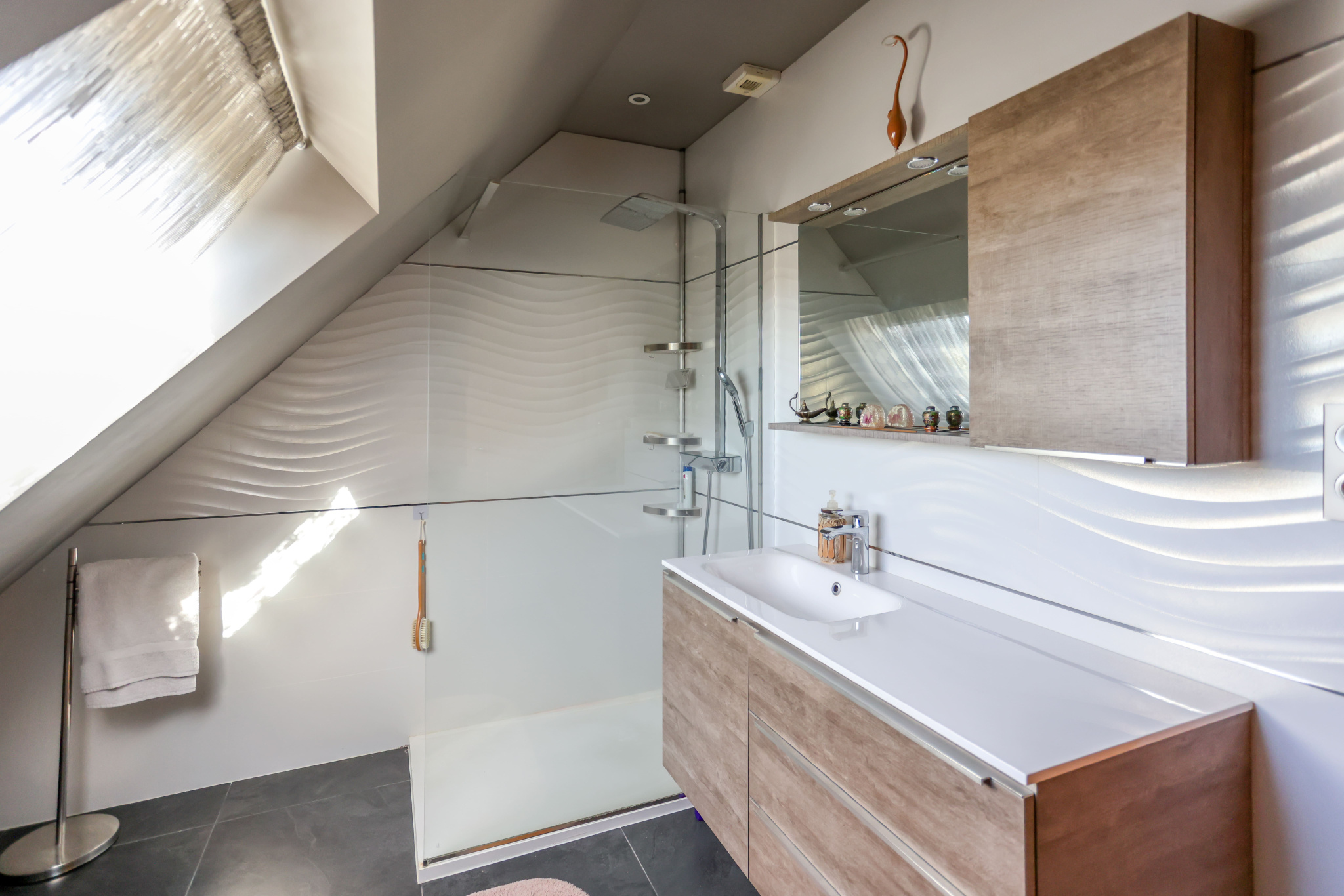 Deux autres chambres avec rangements, une salle d’eau spacieuse et un WC indépendant complètent ce niveau.