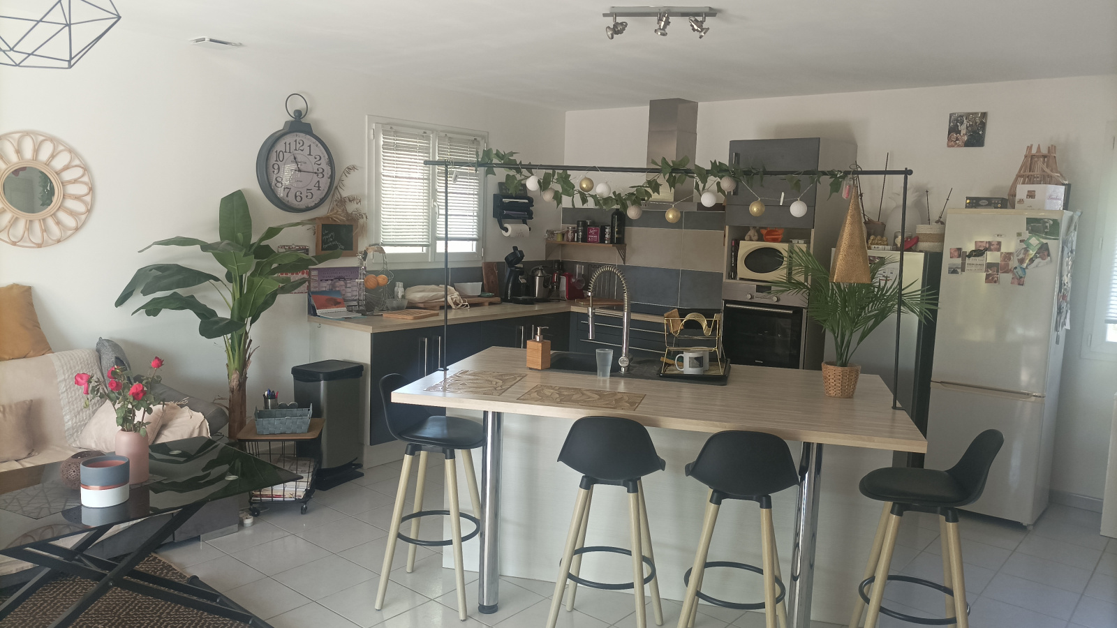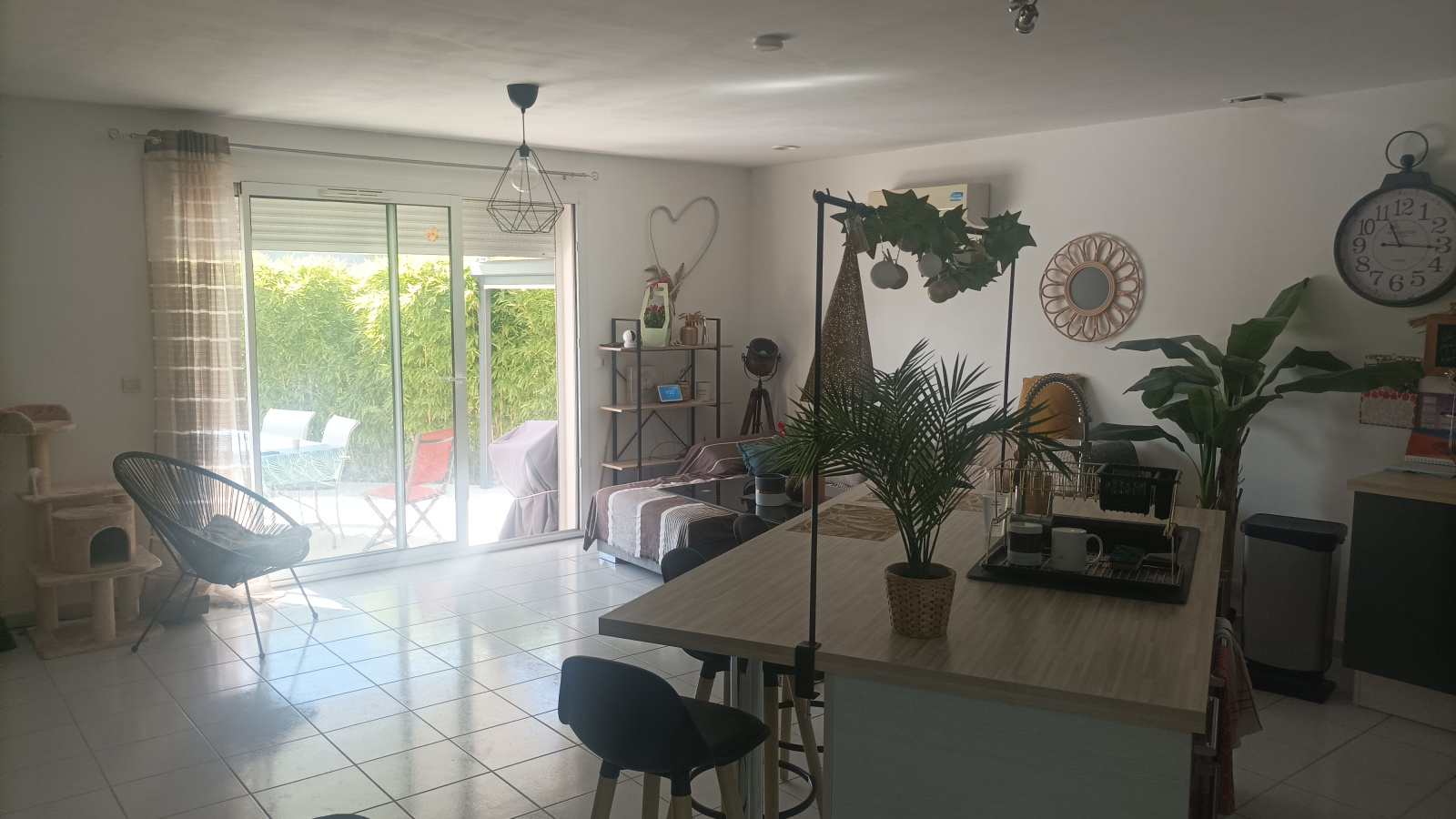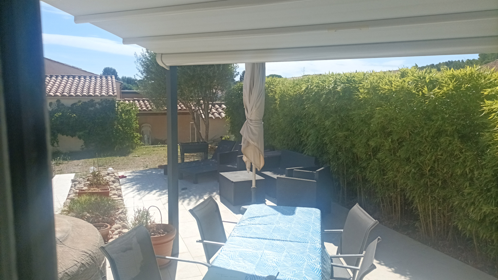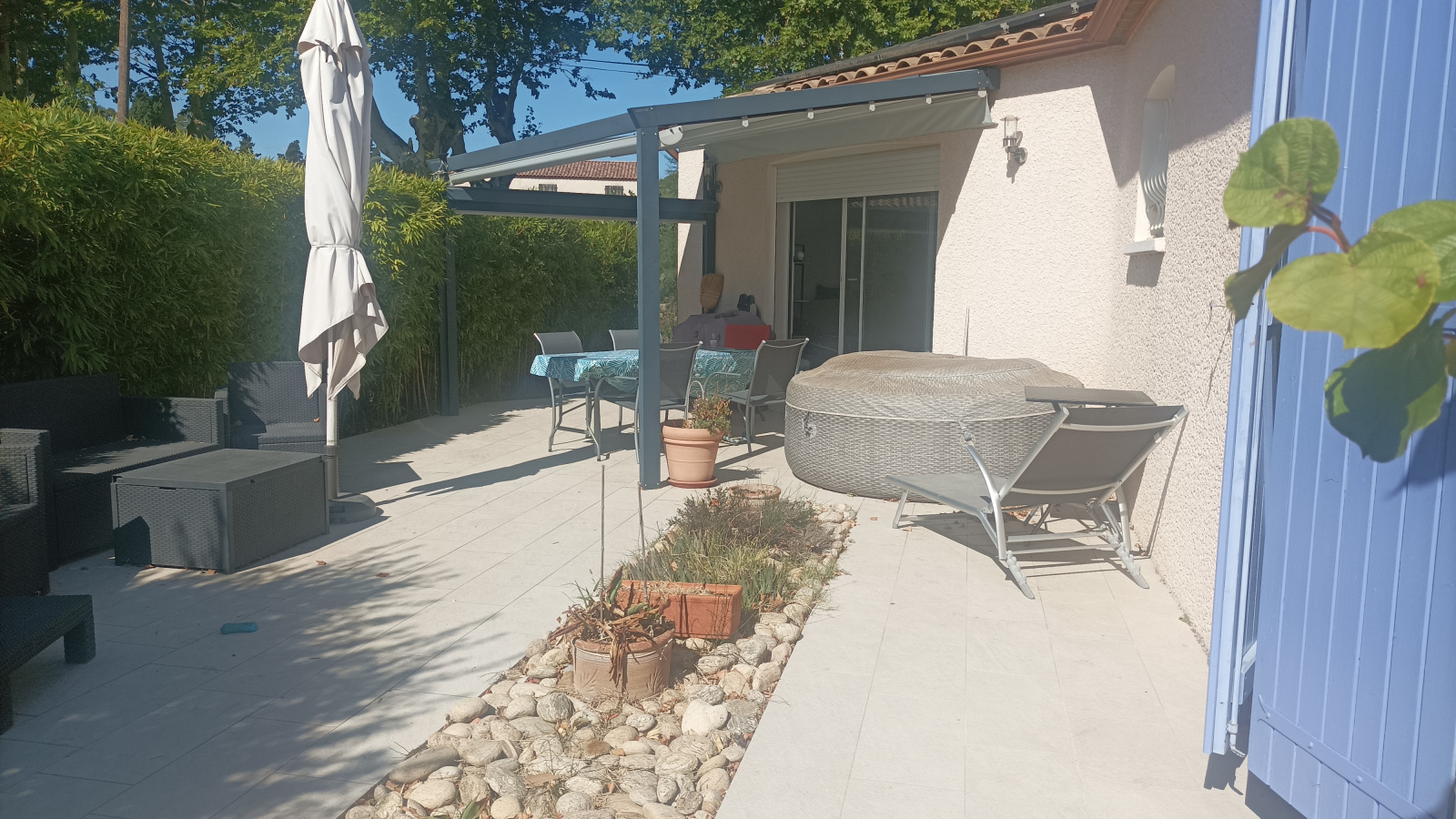 séjour cuisine tres lumineux qui donne sur une magnifique terrasse et sa pergola, 3 chambres dont une suite parentale ,bureau, salle de bain.
