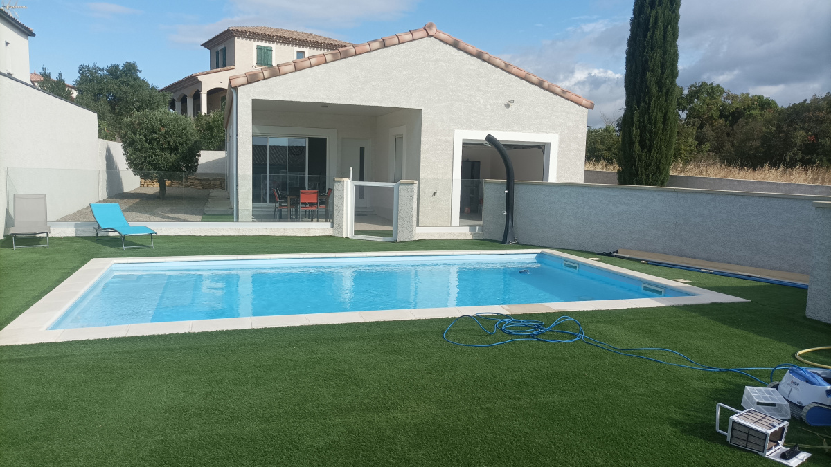 Narbonne quartier crabit très rare superbe villa de plain pied 4 faces sur 566 m2 de terrain avec piscine 7 x 4 securisé et sans vis vis avec pool - house . possibilité de rentre 3 vehicules dans la parcelle.