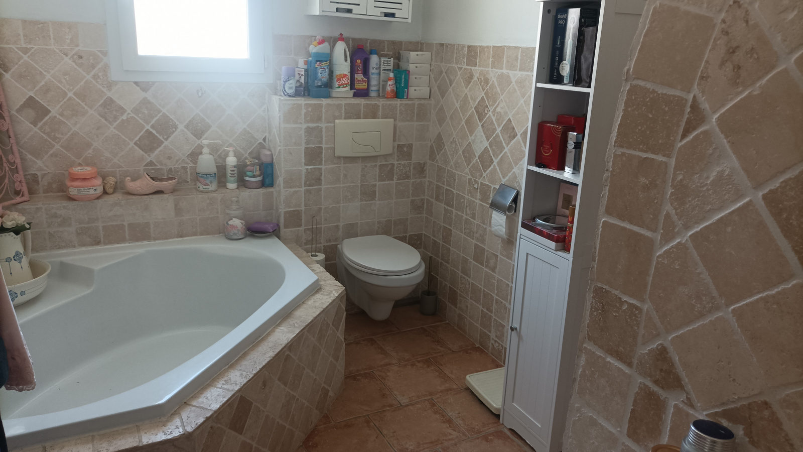 gd salle de bain avec baignoire douche et wc. 4 chambres , buanderie , wc indépendant, climatisation gainable . garage avec mezzanine