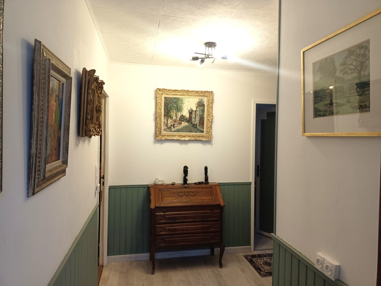 Descriptif : Secteur Laure-Minervois ( 11800 ), Maison plain-pied T4/5 d'environ 125,60 m2 dont 82 m2 habitables composée : entrée, séjour / cuisine équipée ouvrant sur une véranda ( 28 m2 ), 3 chambres / placards, salle d'eau, wc séparés, buanderie ( 15,15m 2 ). Poêle à granulés, clim réversible, double vitrage, volet manuel. Bon état général.Le tout sur un parcelle clôturée et arborée d'environ 2110 m2 ( potager / mare / poulailler ). Présence de panneaux photovoltaïques. Assainissement individuel ( Fosse septique vidangée ). Taxe foncière 826 € dont 165 € d'ordures ménagères.