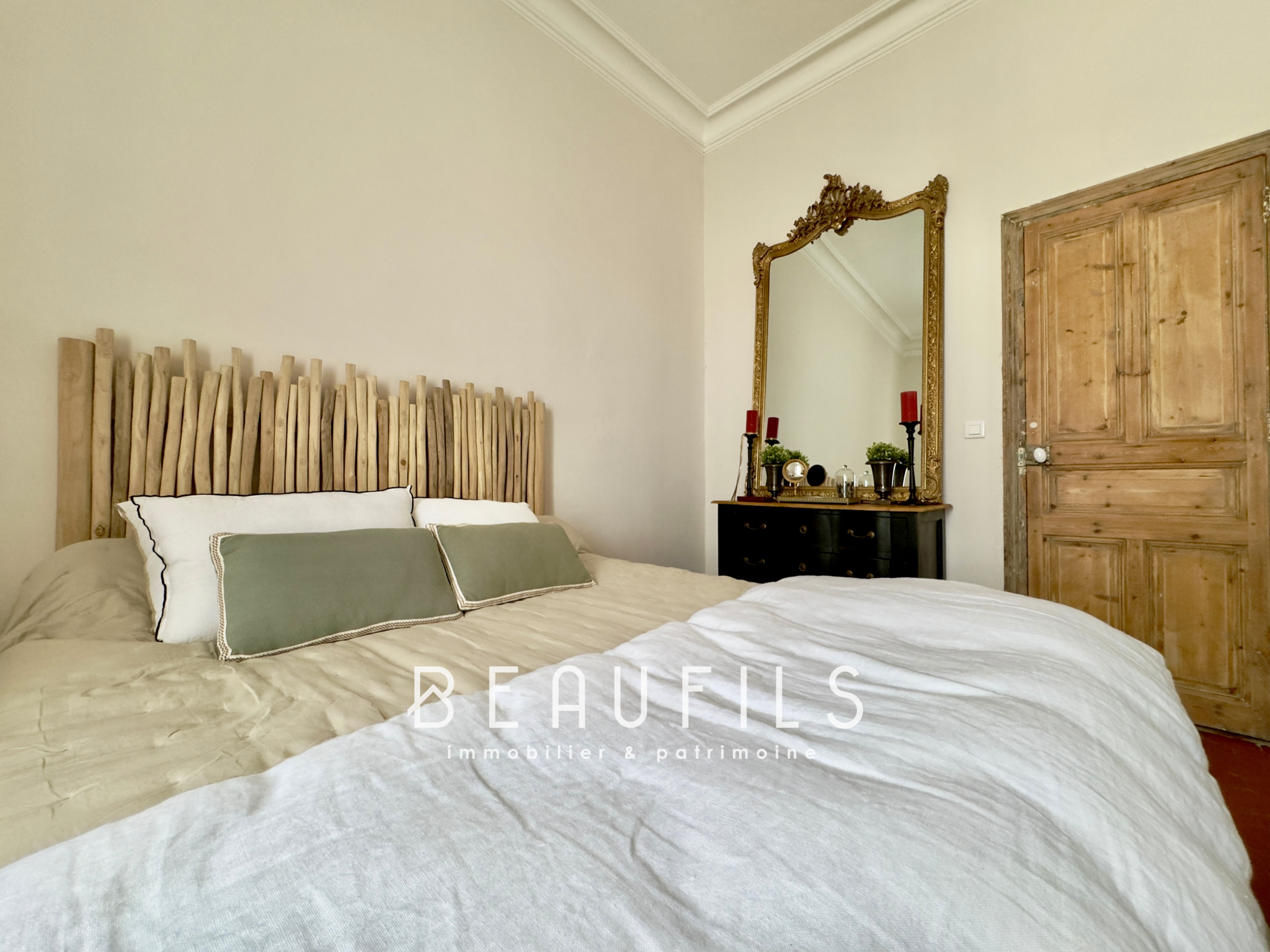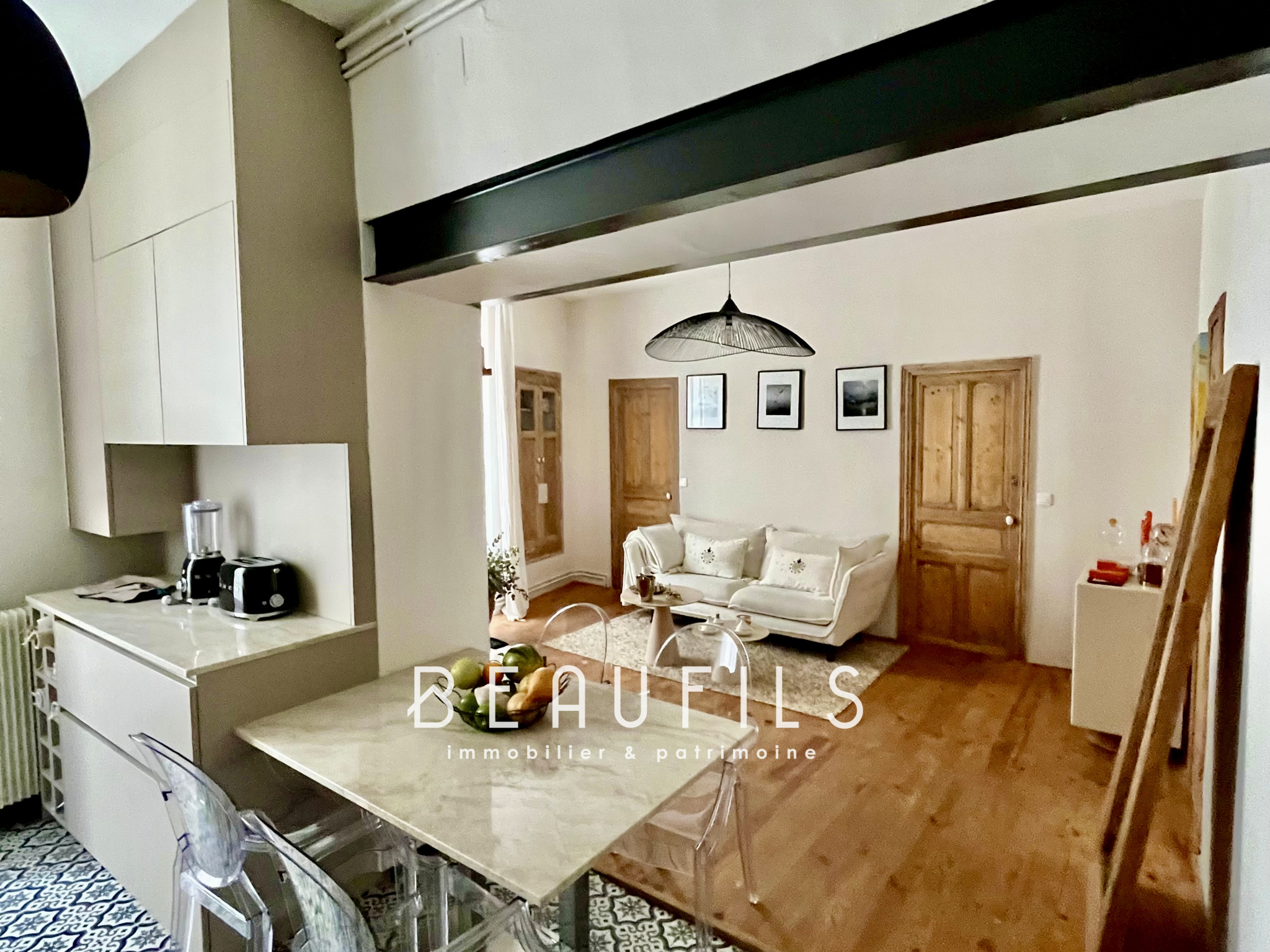 Nîmes Centre (30 000) - BEAUFILS immobilier & patrimoine vous propose, dans une petite copropriété de 9 lots, ce trés bel appartement atypique, T4, entièrement rénové, avec une surface de 82 m2 (78,95 carrez) où se mêlent le charme de l'ancien et du contemporain, vous n'aurez qu'à poser vos valises. Vous profiterez d'un trés bel espace de vie avec une cuisine contemporaine entièrement équipée, de belle facture. L'appartement dispose également d'une suite parentale avec salle d'eau, deux grandes chambres supplémentaires dont une actuellement exploitée comme dressing, une seconde salle d'eau et une buanderie. Ce bien dispose également de deux caves d'une surface totale de 15 m2. Il est situé à 7 minutes à pied du plein centre ville, de la gare reliant Montpellier en 30 minutes, des arènes et de la maison carrée. Egalement tout proche du renommé collège D'ALZON et d'une crêche pour les tout-petits. Contact Xavier 06 02 17 22 40 Siret 831 872 304. Consultez nos honoraires à l'adresse suivante https://www.xbimmoinvest.com/honoraires.pdf