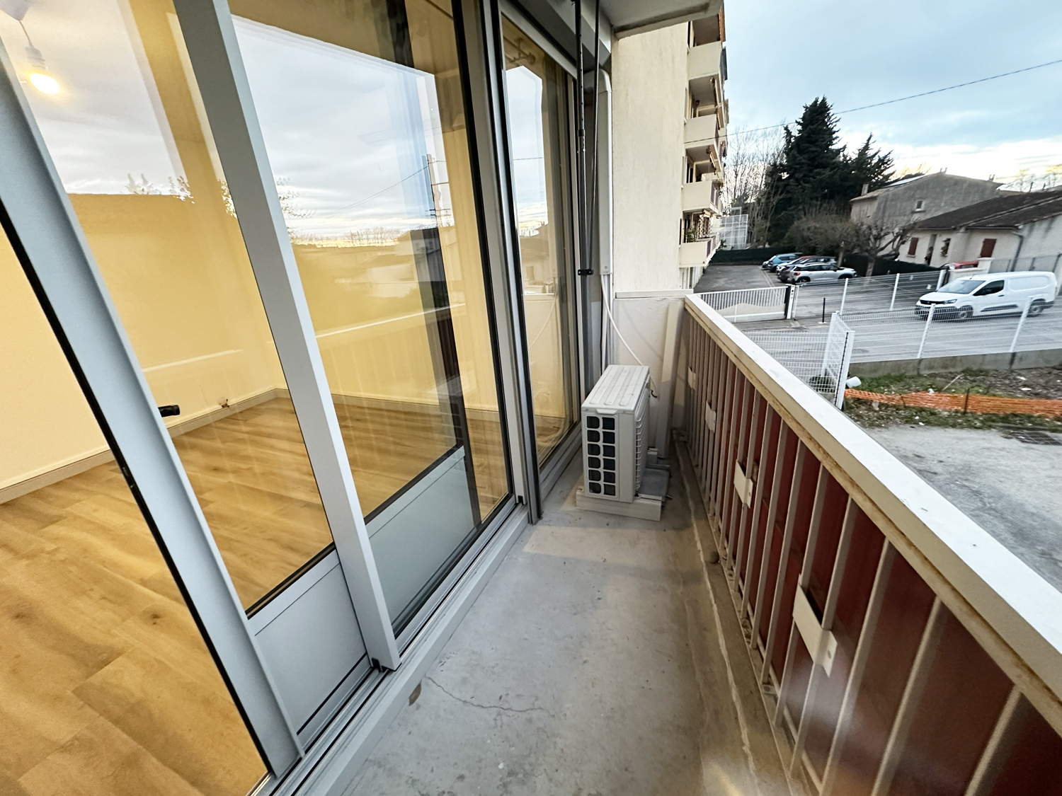 Studio ou T1 Bis car 2 pièces une cuisine repas et un séjour chambre dans un Quartier tranquille au sud-est de Nîmes, le bus devant la résidence le tram à quelques minutes à pied et le périphérique à 5 mn de voiture soit très bien située dans un quartier populaire mais sans problème mon frère y possède 2 studios au même endroit, résidence sécurisée et tranquille, appartement de  23m² avec beau balcon et place de parking, très propre pas de travaux, double vitrage porte blindée et climatisation réversible, chauffe-eau neuf, kitchenette équipée, loyer 450 euros par mois, faible charges, très bon placement à voir .. DPE en C