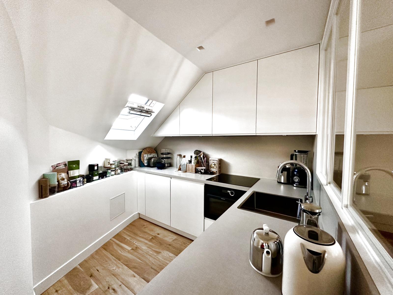 Vous serez séduit par ses prestations haut de gamme : parquet en chêne massif, faux plafonds avec spots intégrés, fenêtres de toit équipées de capteurs de pluie et volets roulants électriques, ainsi qu’une domotique centralisée pour un confort optimal.