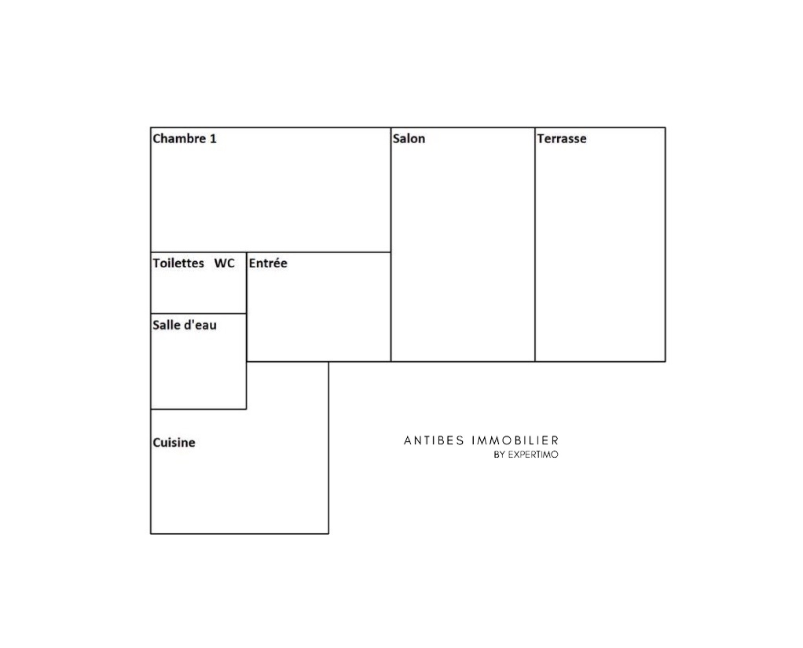 Une chambre avec placard, une cuisine séparée, une salle d'eau, un Wc séparé.