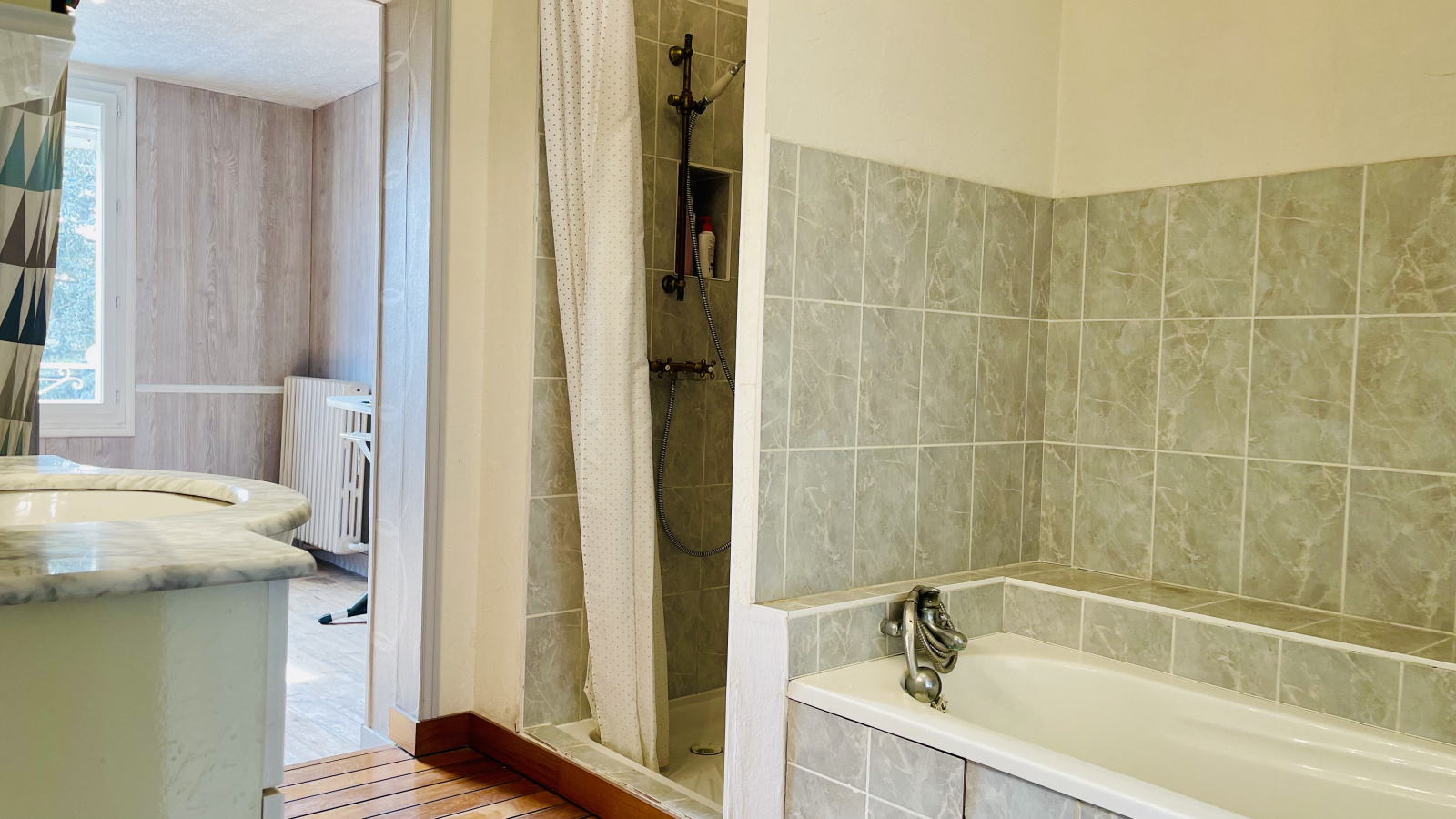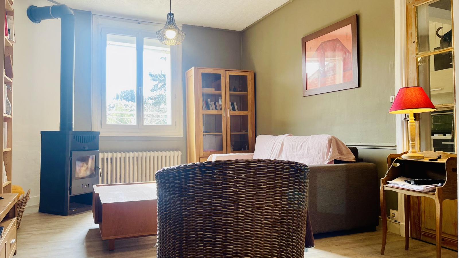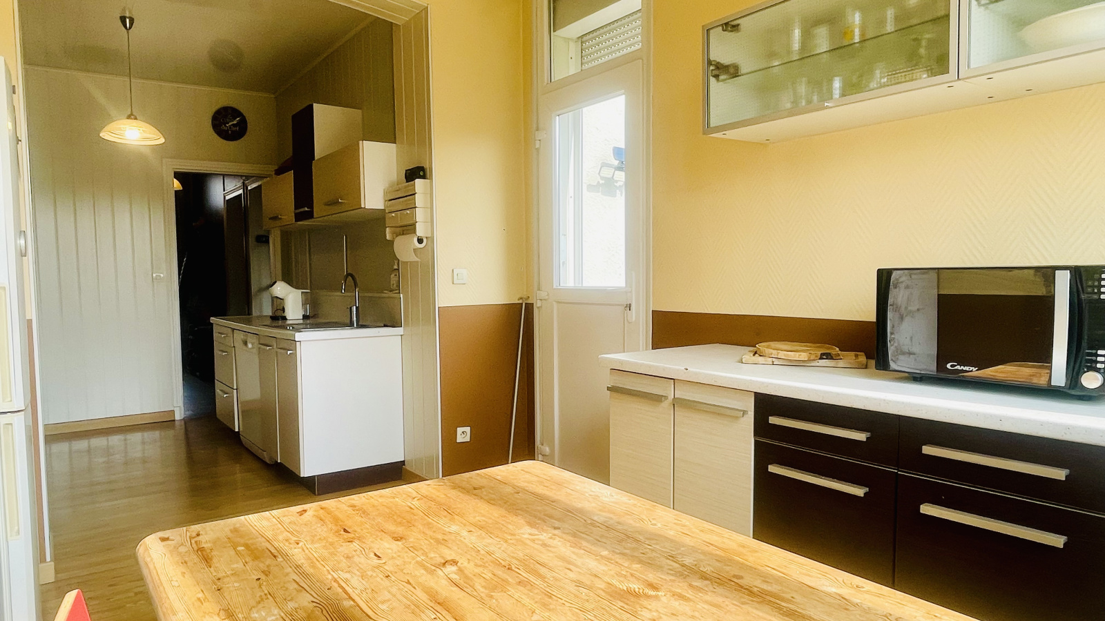 La pièce de vie et la cuisine bénéficient d’une belle luminosité grâce à une exposition favorable, créant une atmosphère chaleureuse et conviviale au quotidien.