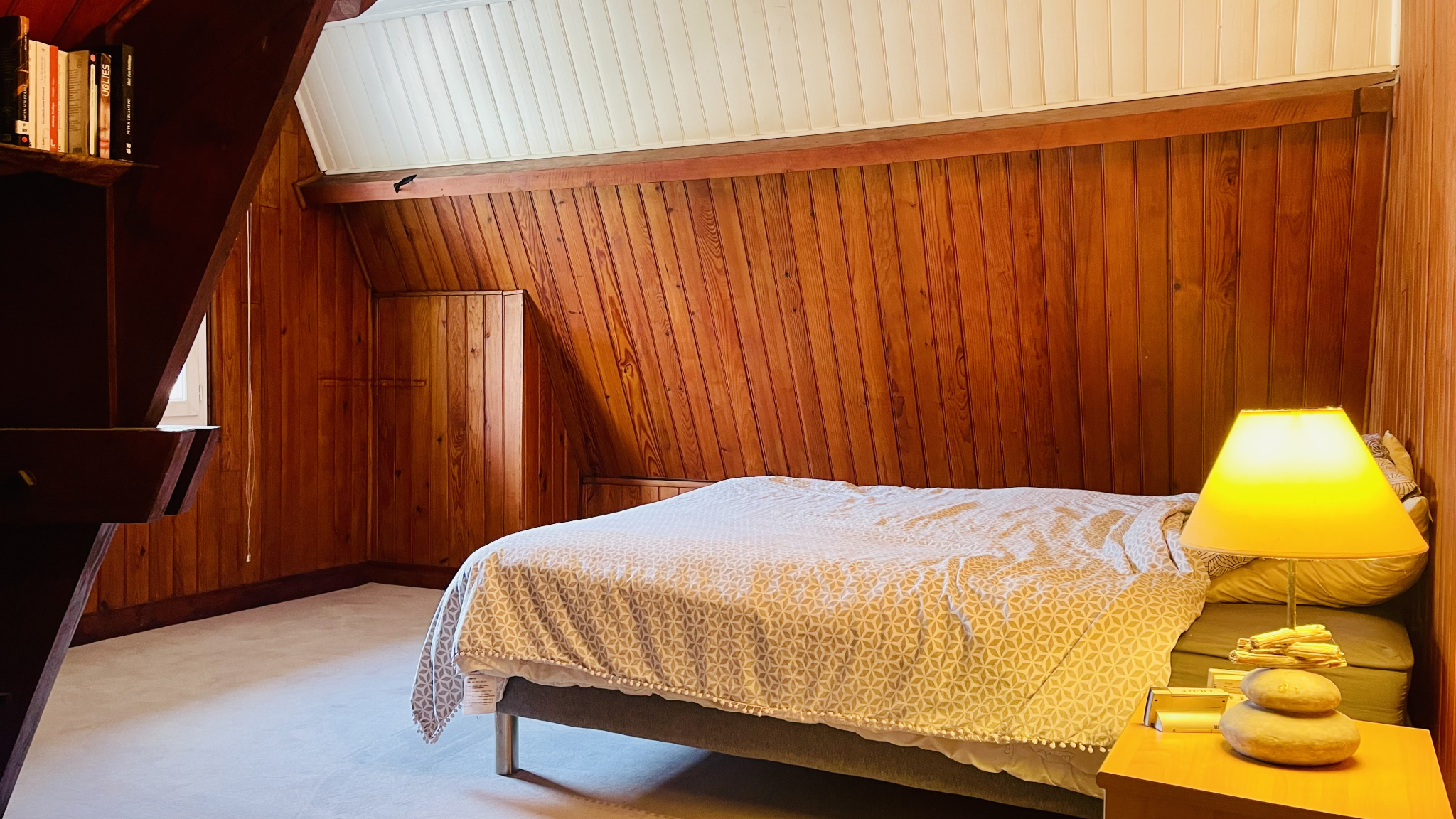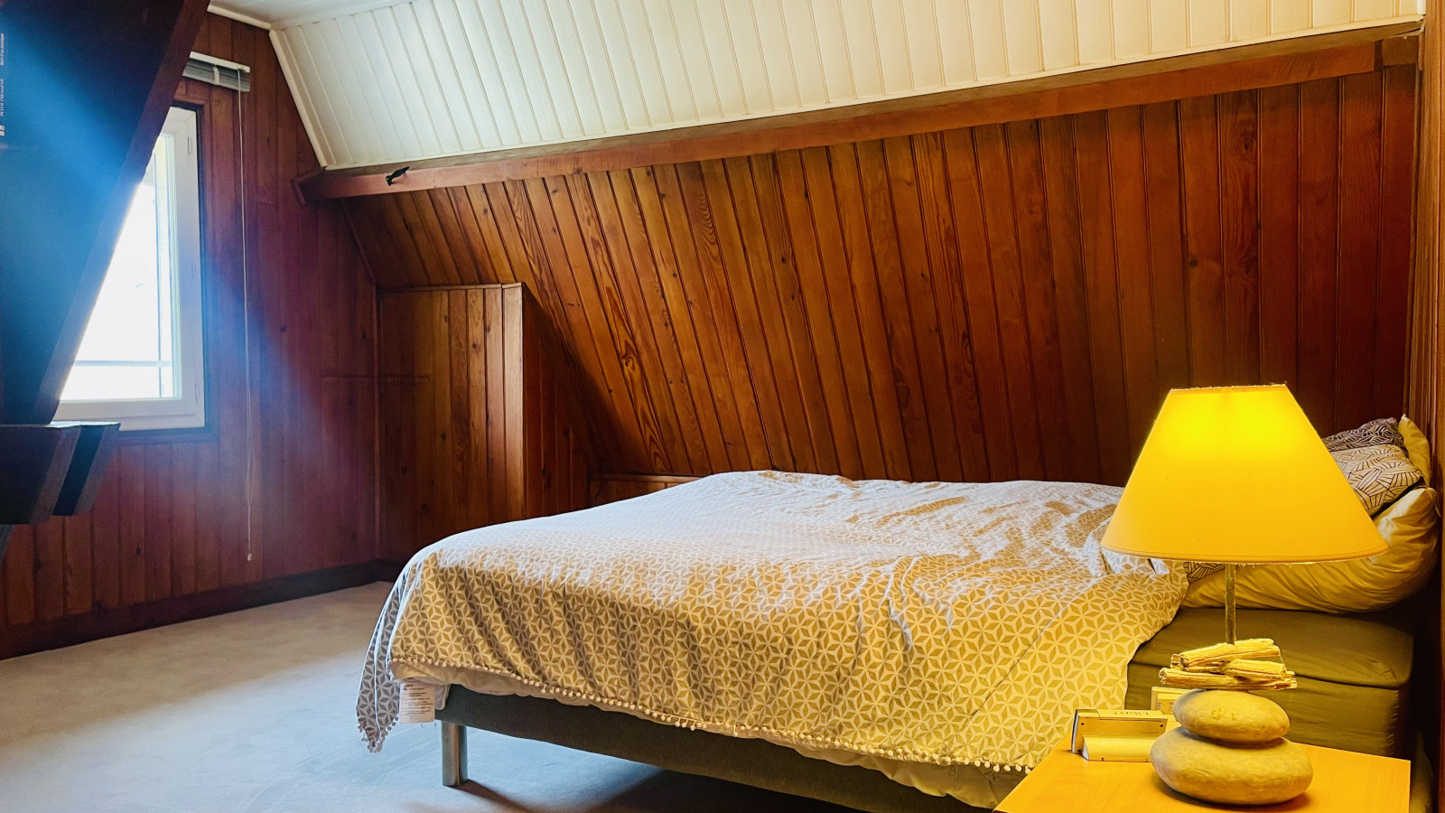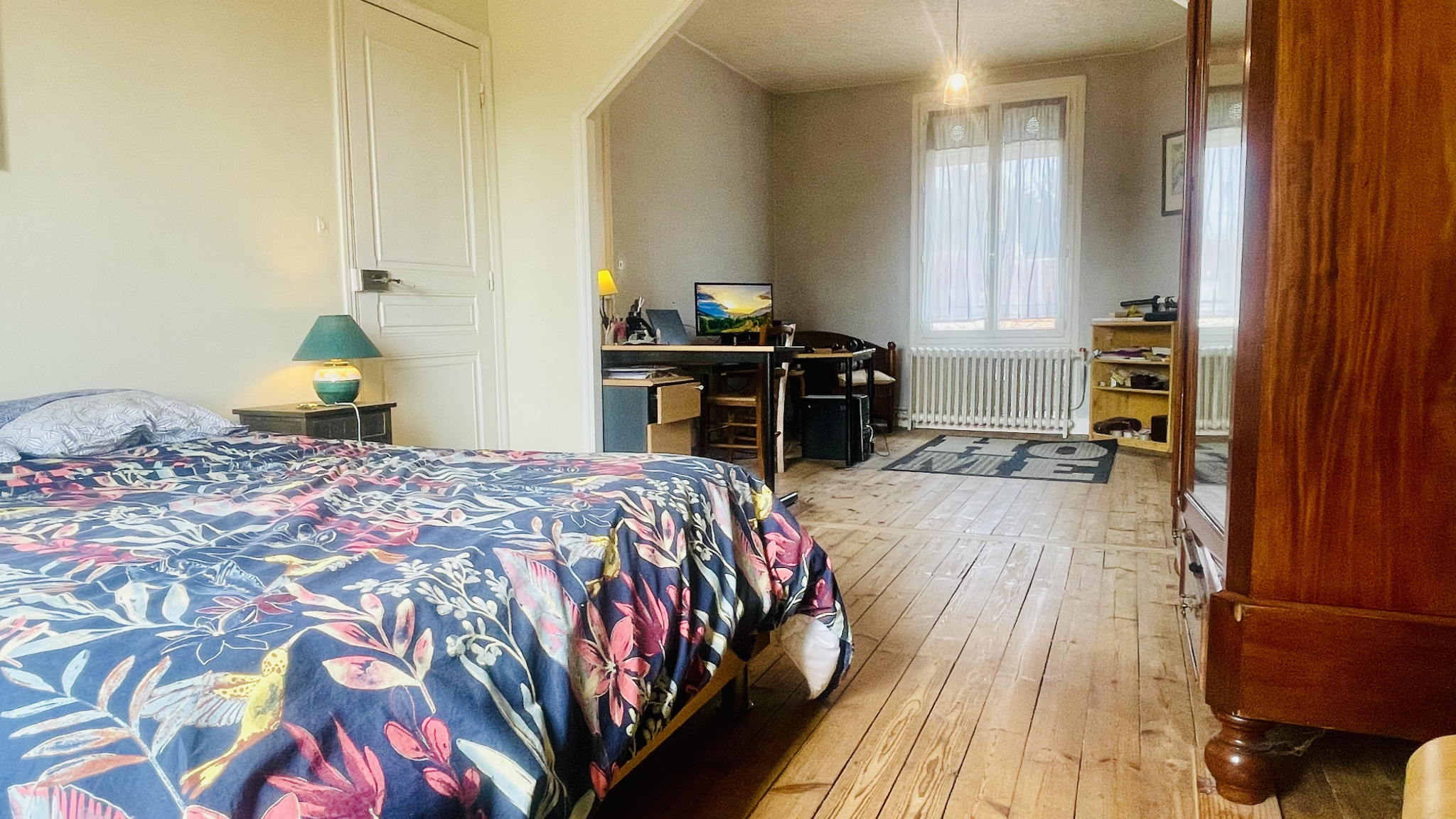 La maison propose actuellement 3 chambres, dont une très grande qui peut facilement être divisée afin de créer une quatrième chambre ou un espace bureau selon vos besoins. Les volumes sont bien pensés et offrent de nombreuses possibilités d’aménagement.
