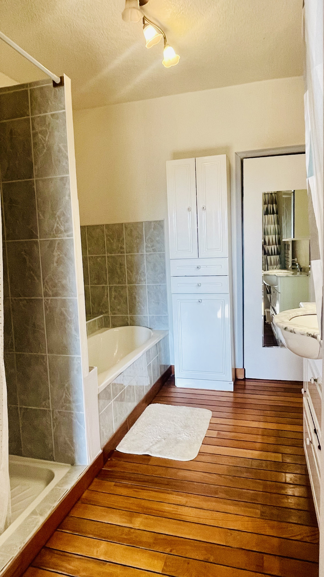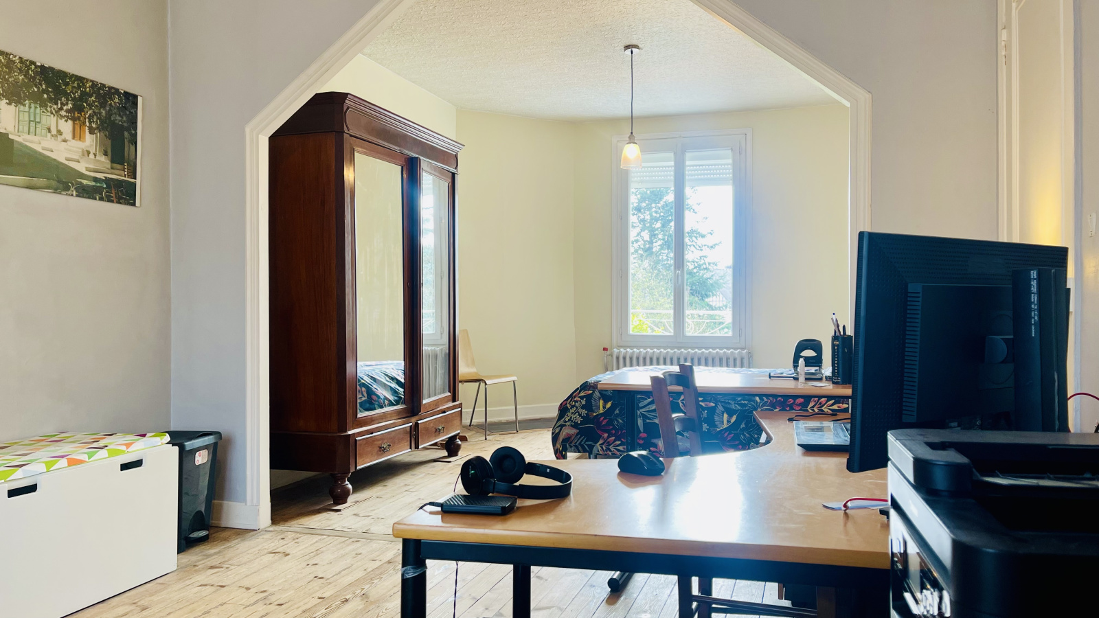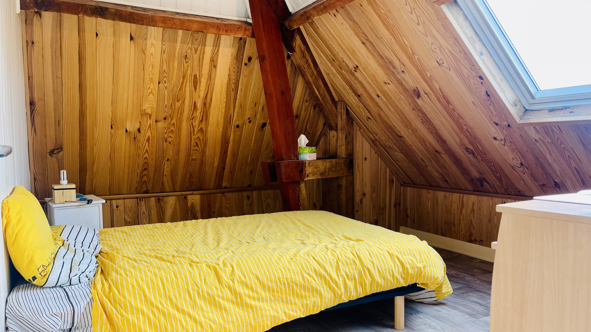 La maison propose actuellement 3 chambres, dont une très grande qui peut facilement être divisée afin de créer une quatrième chambre ou un espace bureau selon vos besoins. Les volumes sont bien pensés et offrent de nombreuses possibilités d’aménagement.
