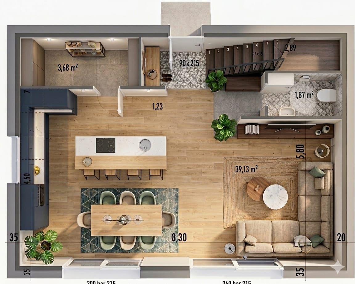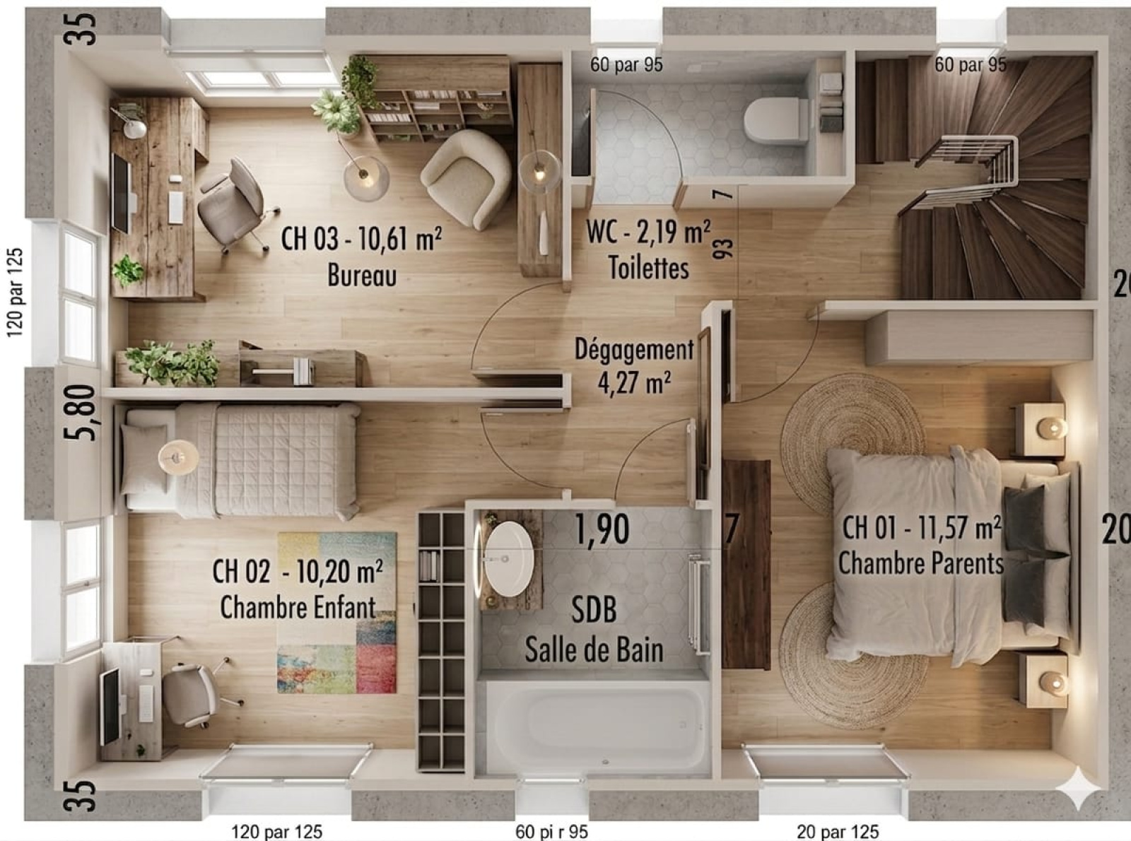 de 87.50 m² en R+1 pensée pour allier confort, modernité et élégance.