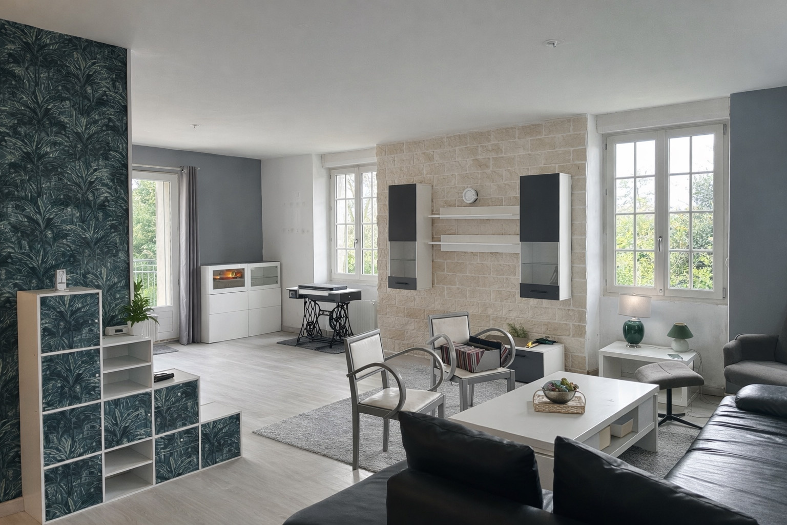 Appartement F2 comprenant: entrée avec placards, séjour-salon triple exposition avec cuisine ouverte à aménager accès terrasse, 1 chambre, salle d'eau, wc. Cave buanderie + grand garage. Jardin indépendant de 600m² environ, 1 place de parking. Chauffage gaz de ville.
