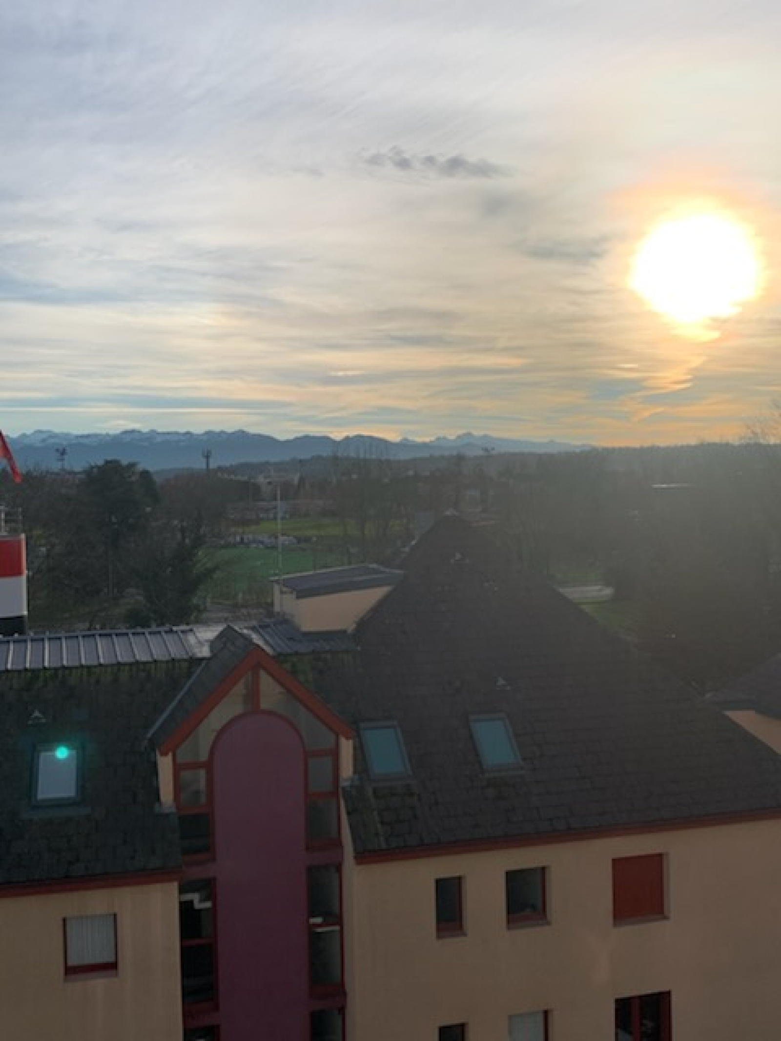 Du haut de son 4ème étage, la vue est dégagée sur les montagnes. La résidence est sécurisée et équipée d’un interphone et d’un ascenseur.
