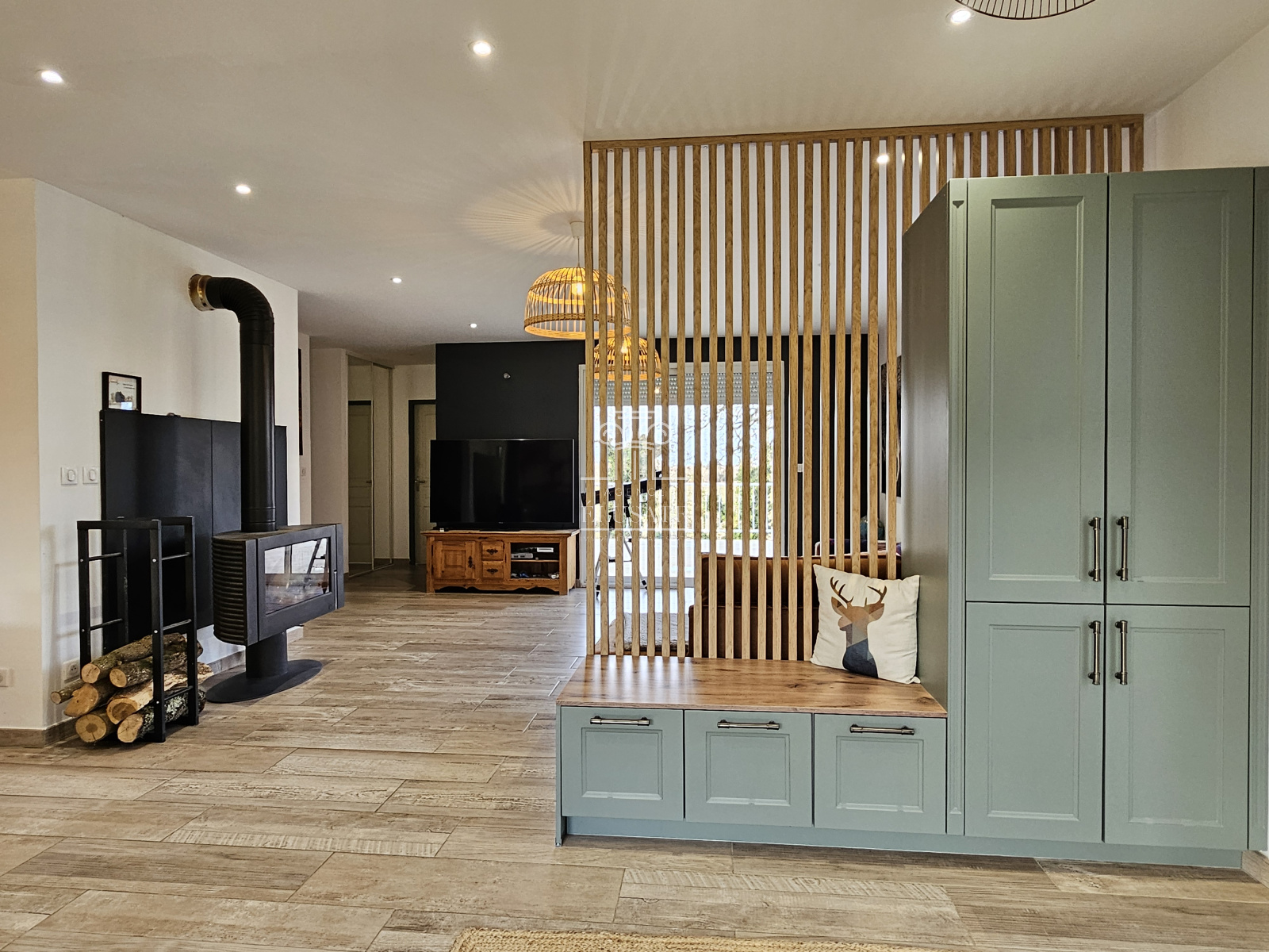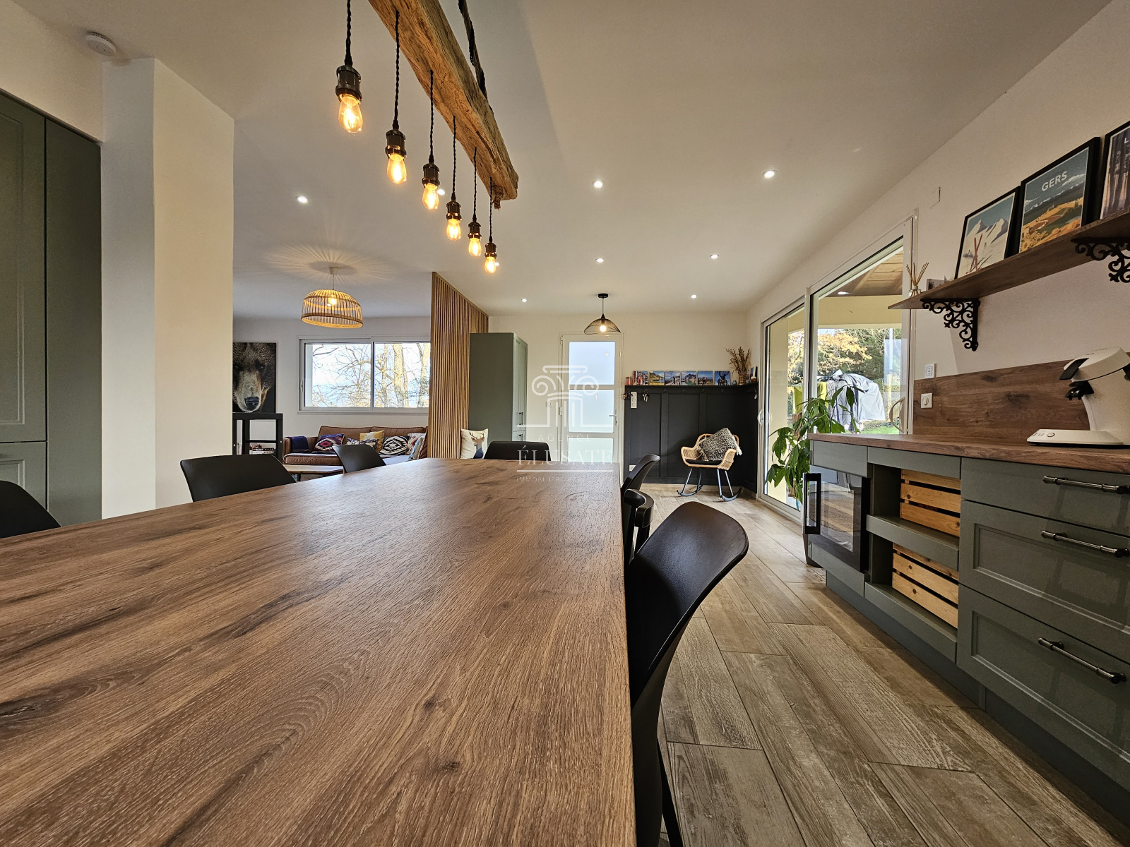 Venez découvrir cette belle contemporaine, nichée dans un environnement paisible à la campagne, vous serez séduit par ses espaces et sa luminosité, grâce à ses nombreuses baies vitrées notamment dans la pièce de vie de 62m².Le rez-de-chaussée se compose d'une entrée donnant sur une sublime cuisine, moderne et fonctionnelle, offrant un espace convivial pour préparer de délicieux repas pour toute la famille et les amis.Le salon est de taille idéale pour se retrouver et partager des moments cosy au coin du feu en hiver ou plus festif en été car il se prolonge sur une immense terrasse en travertin, avec vue sur la campagne environnante.La cuisine communique avec une terrasse couverte grâce à une porte à galandage parfait pour profiter de repas en extérieur tout en profitant de la piscine à proximité. En rez-de-chaussée, une superbe chambre parentale ayant sa propre mezzanine, idéal pour un bureau et/ou un dressing; une grande salle de bain avec douche et baignoire et un wc indépendant.À l' étage, un large palier actuellement aménagé en salle de jeux, mène à trois belles chambres dont 2 avec de grands velux et aménagées avec des placards sur-mesure afin d'optimiser les espaces sous pentes. Cet étage dispose également de sa propre salle d'eau avec wc.Le grand terrain ombragé vous permettra de profiter de la nature environnante, la piscine enterrée de 8*4 est chauffée et sécurisée, idéal pour passez des moments de détente.Enfin, un garage de 120m² avec 2 portes motorisées et une belle hauteur complète ce bien d'exception et vous permettra de stocker, bricoler ou tout simplement garer plusieurs véhicules...Â