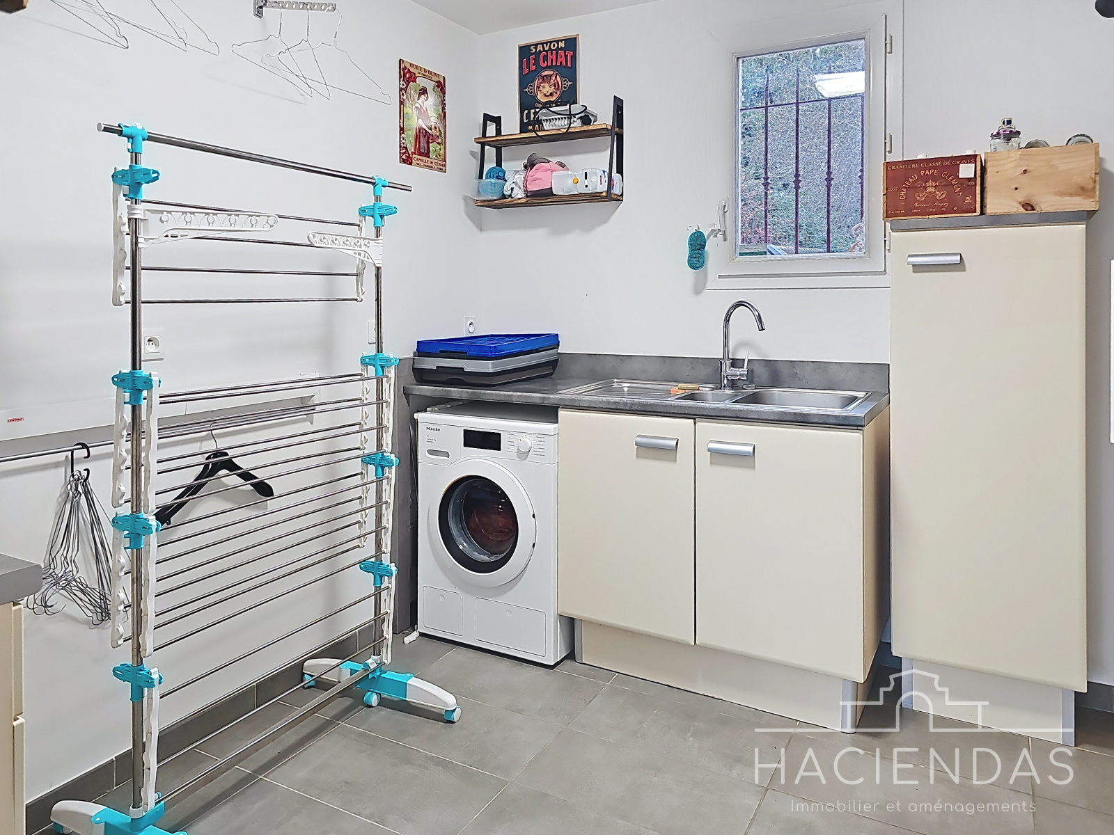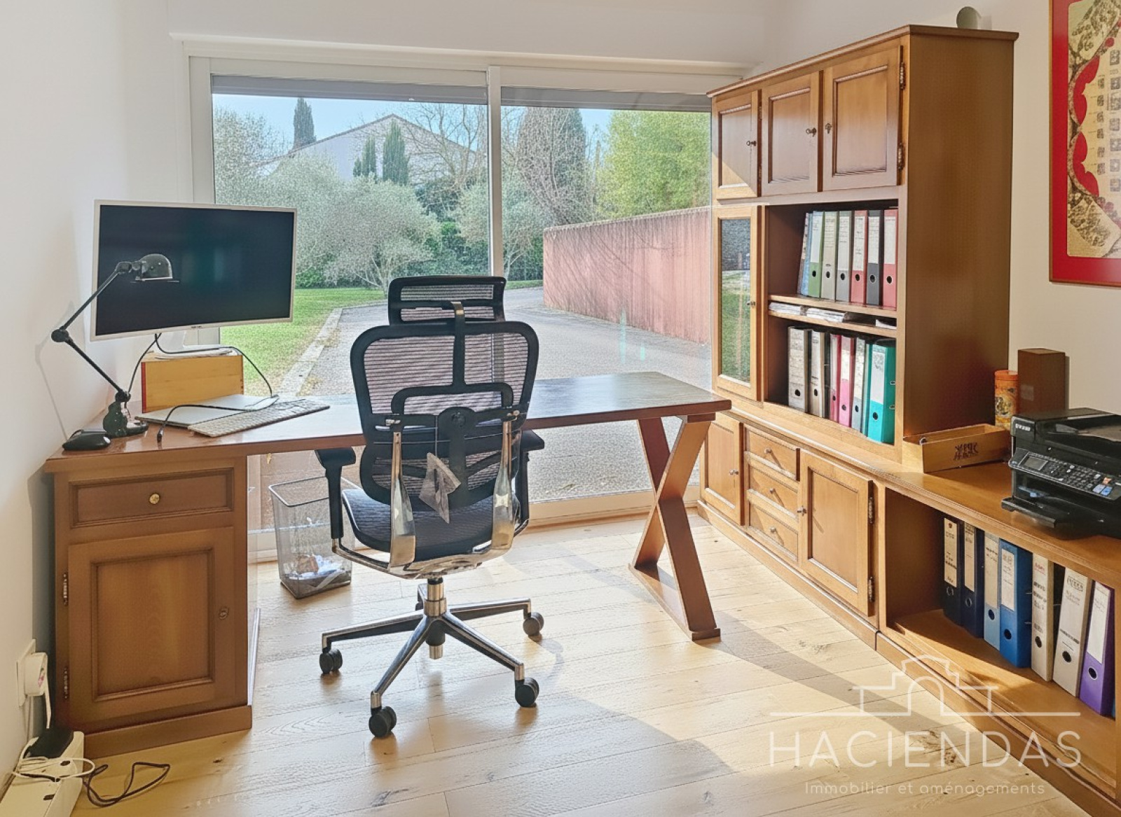 À l’extérieur, le jardin paysager, plat, exposé sud et sans vis-à-vis, accueille une jolie piscine béton, une terrasse avec pergola, un bûcher et un garage de 22m² avec mezzanine de stockage. A noter également la présence d'un borne de chargement pour véhicules électriques