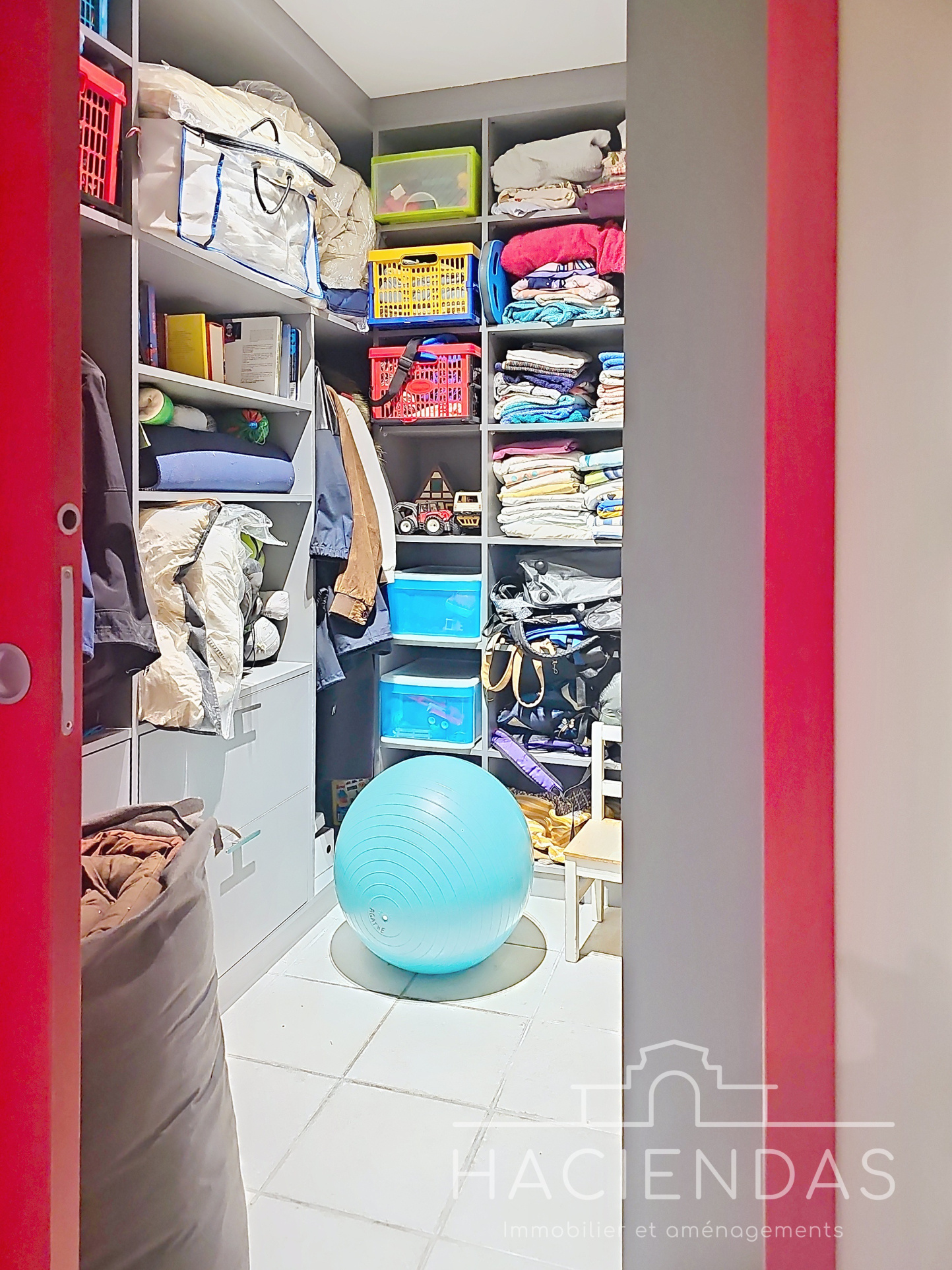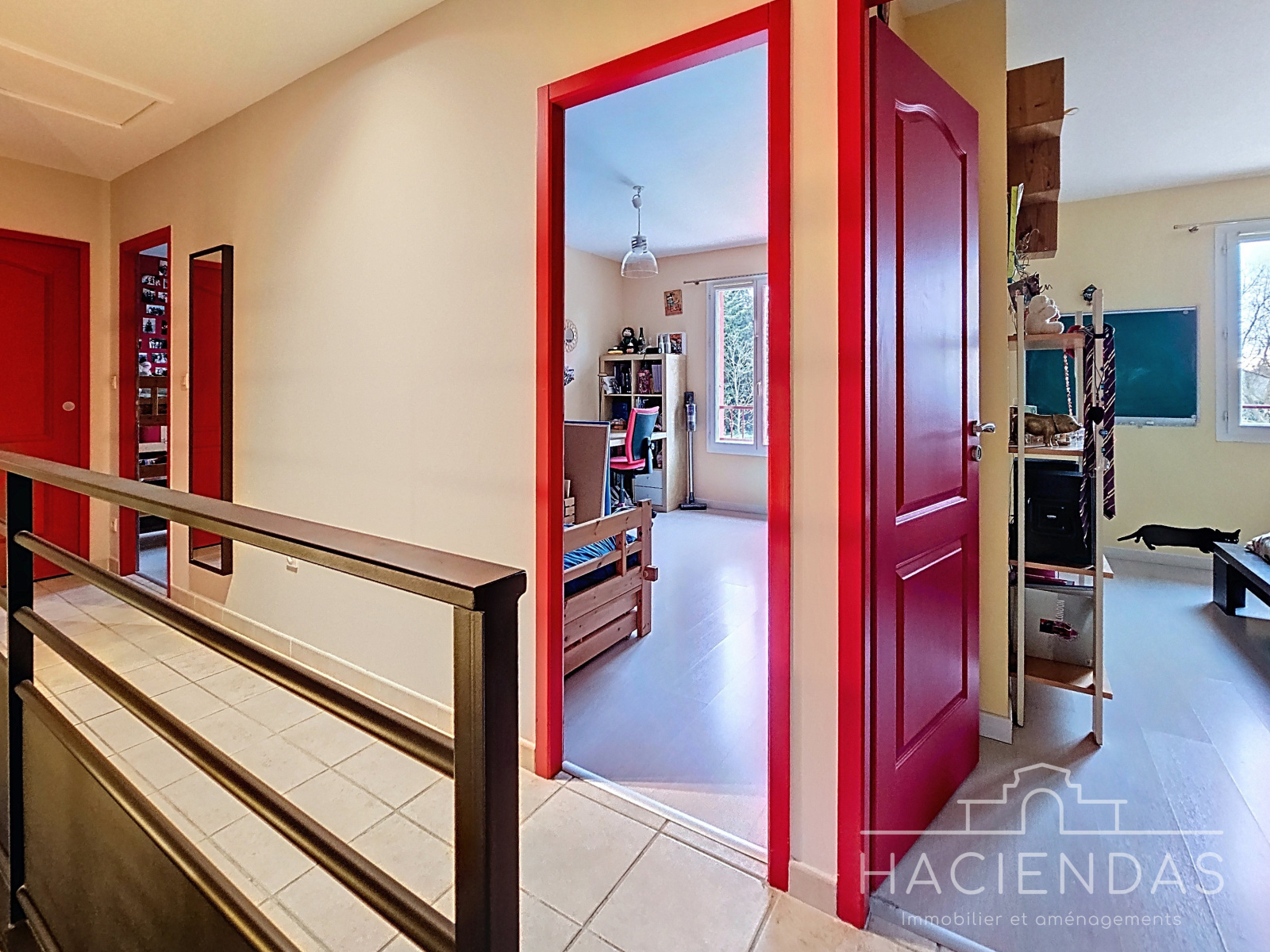 L’étage dessert un deuxième espace couchage avec trois chambres supplémentaires, une grande salle de bain mixte (baignoire et douche), un WC indépendant et un bel espace de rangement.