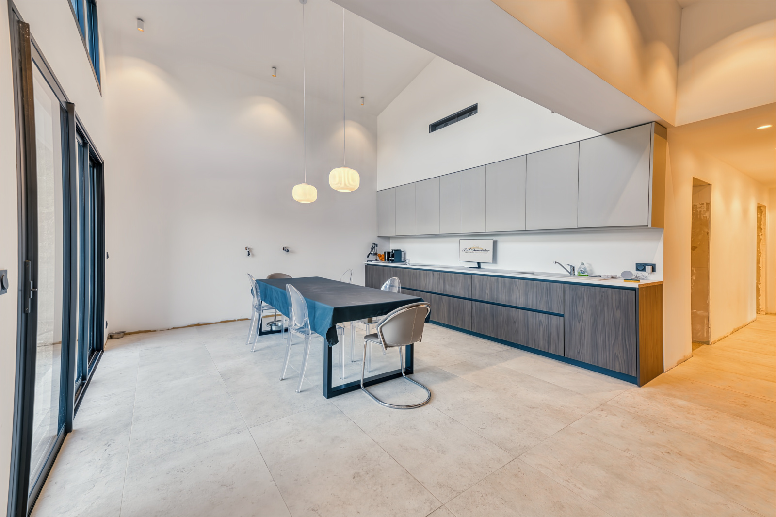 - Pièce de vie avec cuisine ouverte d’environ 55 m²