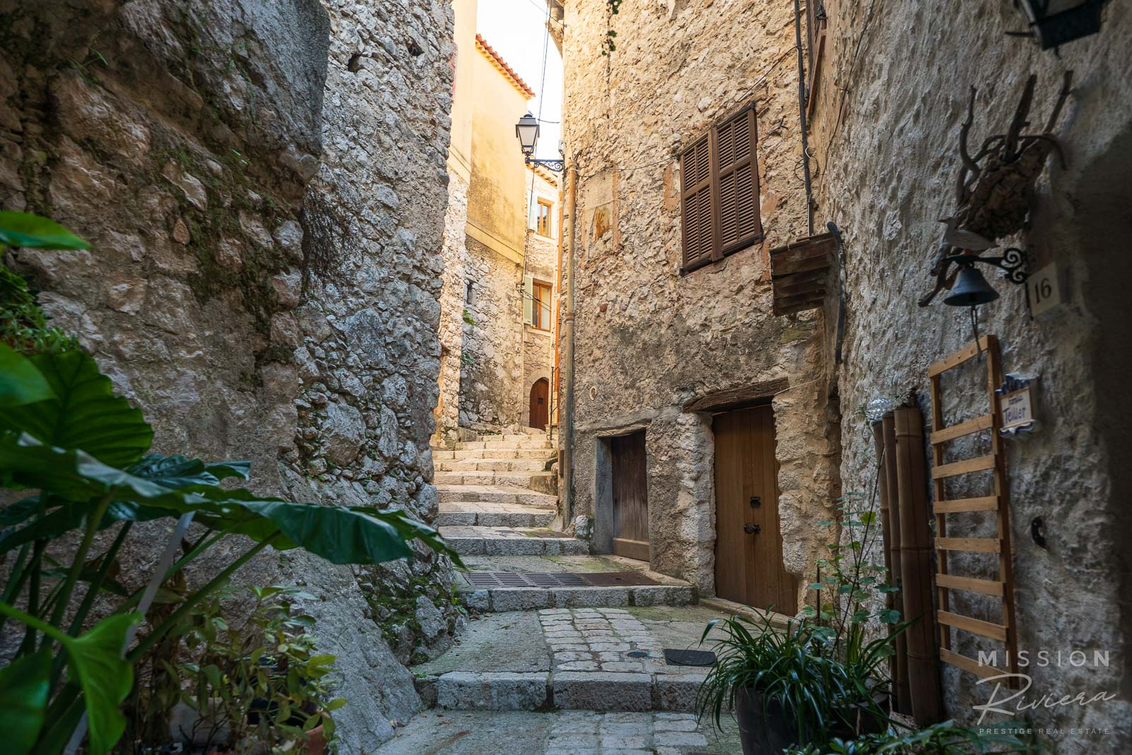 Le village lui-même est un endroit merveilleusement calme, et vous pouvez sentir l’histoire imprégner chaque bâtiment, chaque arcade et chaque ruelle tranquille. On a l’impression d’être loin de la ville, dans un environnement vraiment préservé, bien que l’on soit à moins de 25 minutes du centre de Nice.