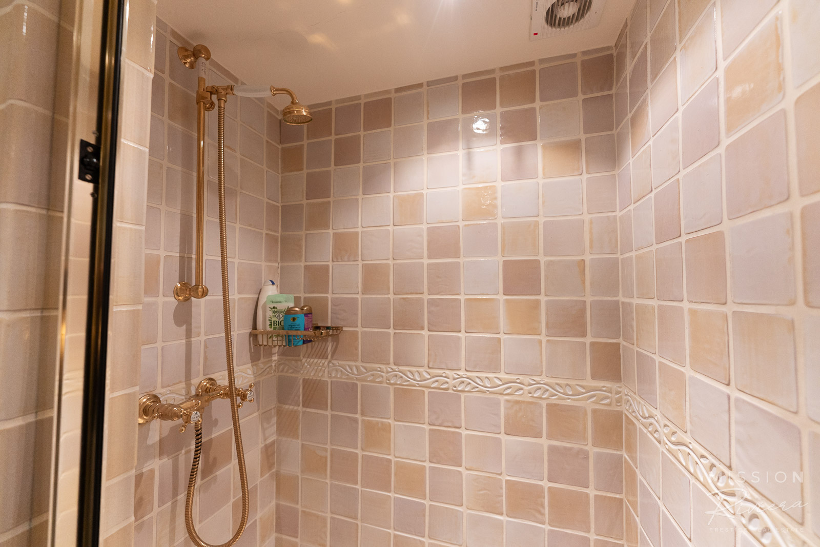 Une porte de la pièce principale mène à la salle de douche/WC bien équipée, qui est spacieuse et dispose d’une douche moderne.