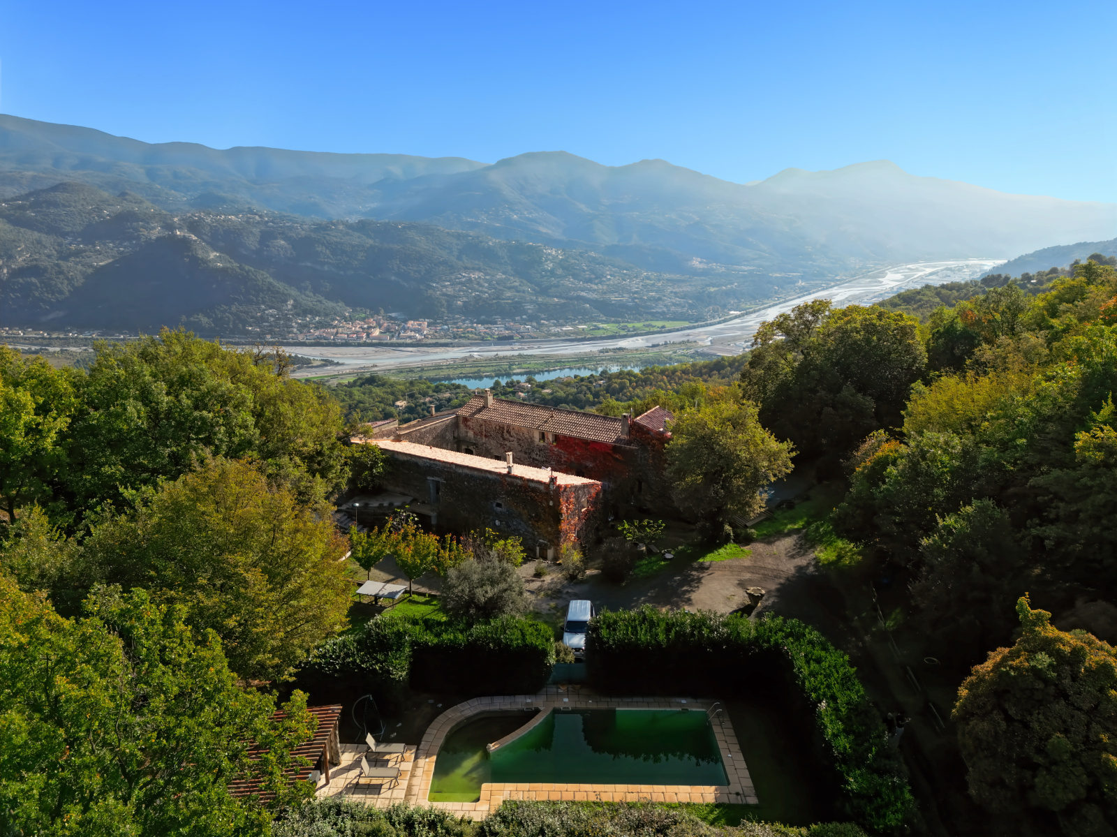 Dans le haut pays niçois, à 25 minutes de l’aéroport de Nice, ce domaine du XIIIe siècle développe 678 m² habitables au cœur de 26 hectares de nature préservée. La propriété réunit une vue panoramique sur la vallée du Mercantour, les collines environnantes et jusqu’à la mer Méditerranée, une piscine, une chapelle, des espaces d’accueil et un fort potentiel pour une résidence de prestige, une activité d’hébergement ou un projet événementiel.