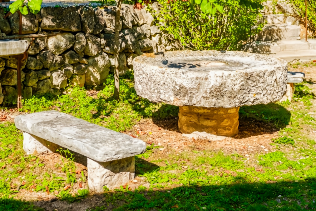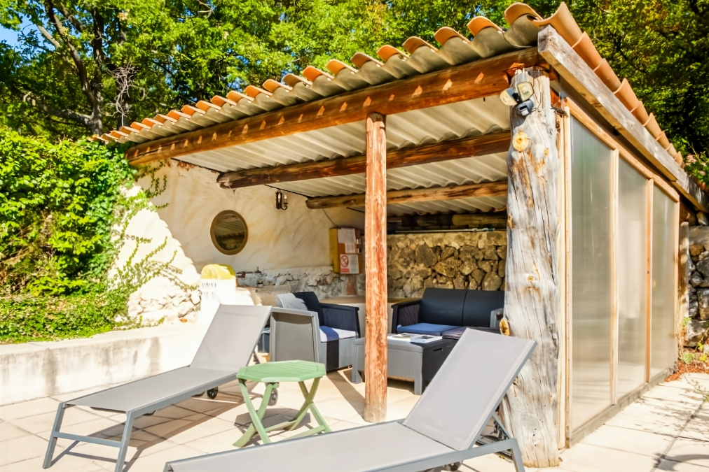 À l’extérieur, les différentes terrasses prolongent les espaces de vie et ouvrent sur des panoramas exceptionnels. La piscine, le pool house et le terrain de pétanque renforcent la dimension détente du lieu. Les 26 hectares, en partie dédiés à la culture de la truffe, offrent aussi des sentiers adaptés aux balades à pied ou à cheval.