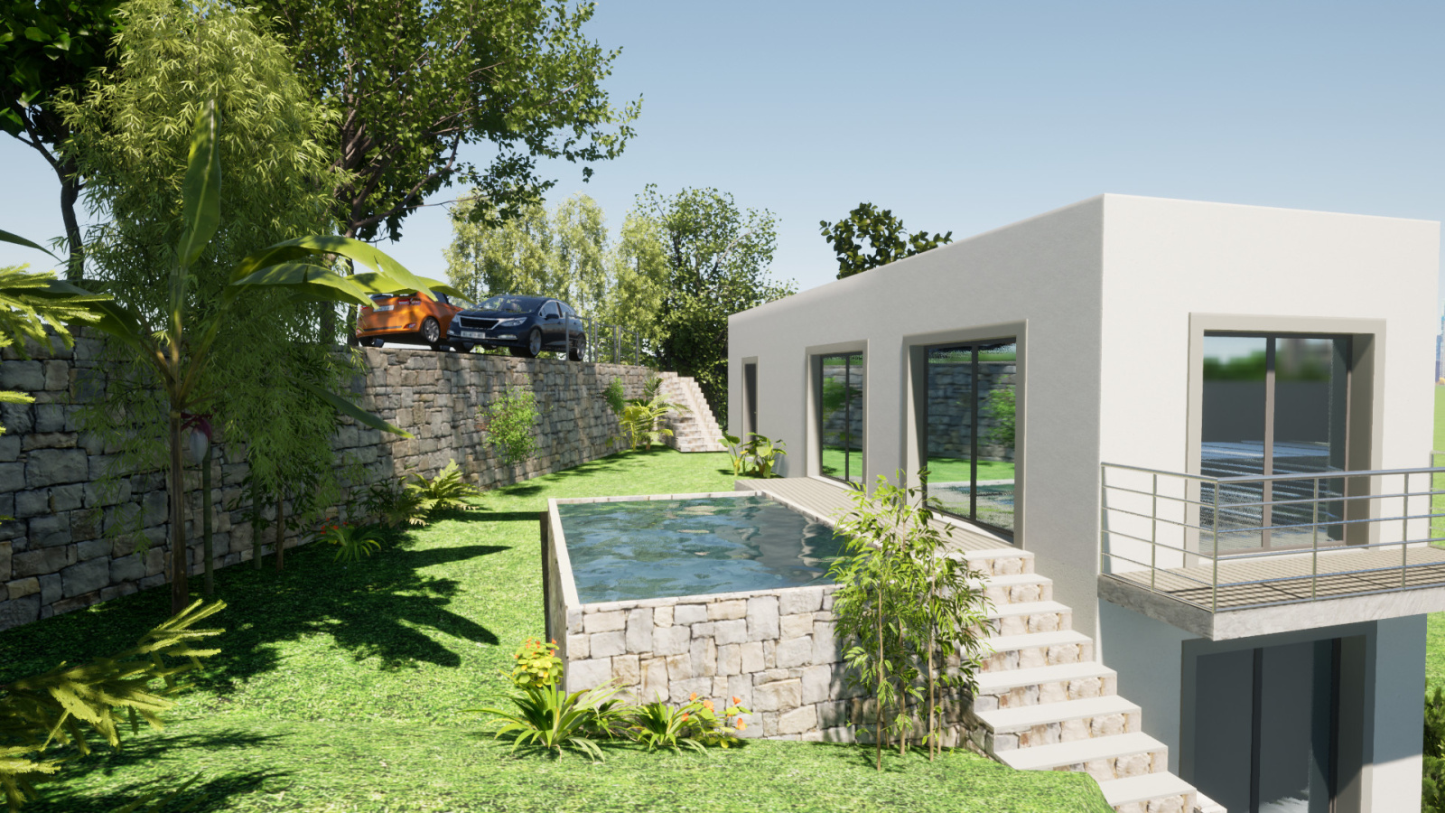 Vendu avec PC d'architecte purgé de tous recours pour la construction d'une villa moderne de 90 m2 de surface de plancher ( SP) environ sur 2 niveau, parkings et piscine.