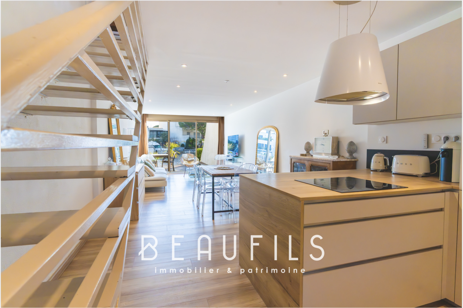 Le Grau du Roi - Port Camargue - Découvrez cette marina d'exception traversante de 78,13m² entièrement rénovée en 2021 par maître d’œuvre, offrant un appontement d’angle privé de 3x10m, terrasse en bois de 16m² et un stationnement privatif inclus. Baignée de lumière, et agencée en duplex, elle séduit par sa vue mer/port et ses prestations haut-de-gamme : vaste séjour avec cuisine ouverte équipée, baies vitrées triple ventaux, climatisation réversible dans toutes les pièces, ballon thermodynamique, DPE B, murs lissés, double vitrage, volets roulants électriques et compteur aux normes. L’espace nuit propose 2 chambres de plus de 12m², un dressing et une salle de bain contemporaine avec baignoire, douche à l’italienne et double vasque. Résidence de standing sans procédures en cours, toiture et ponton rénovés en 2025. Idéal résidence secondaire, principale ou investissement premium. Vidéo immersive sur demande. Pour organiser une visite, contactez Anthony Fages – 07.71.15.70.03 Honoraires à la charge du vendeur – RCS 831 872 304 – www.xbimmoinvest.com/honoraires.pdf