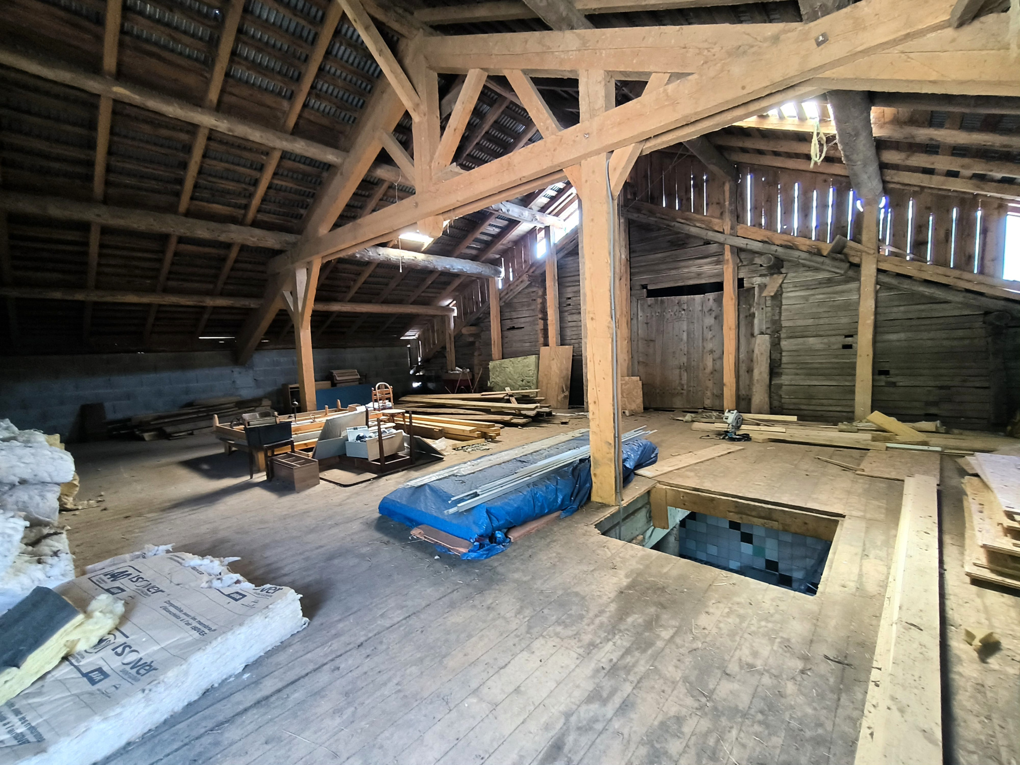 Étage – Grange : environ 120 m² au sol, avec très belle hauteur sous plafond, permettant la création d’un logement de caractère type duplex ou loft alpin.