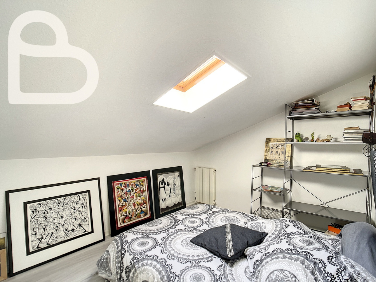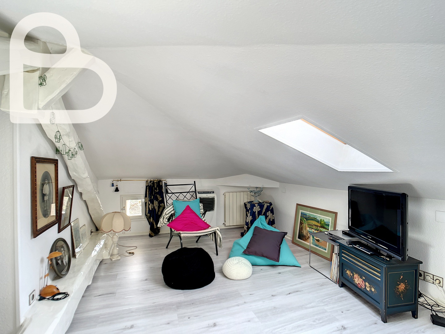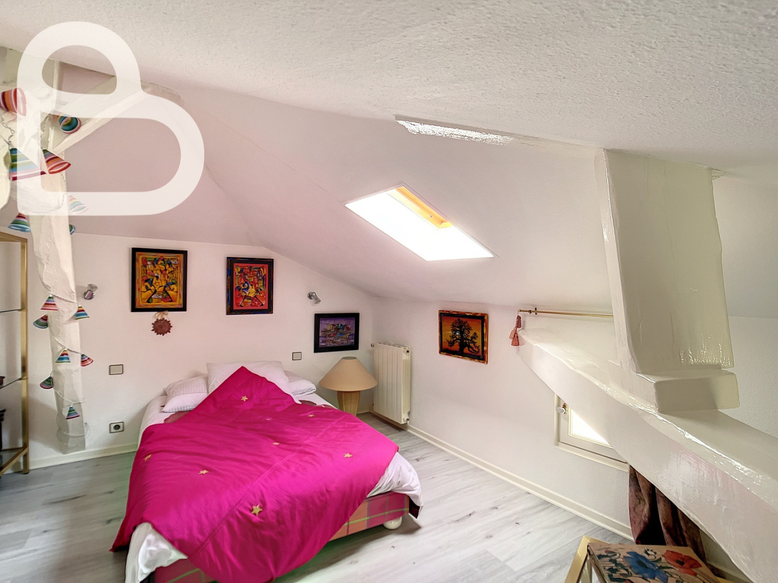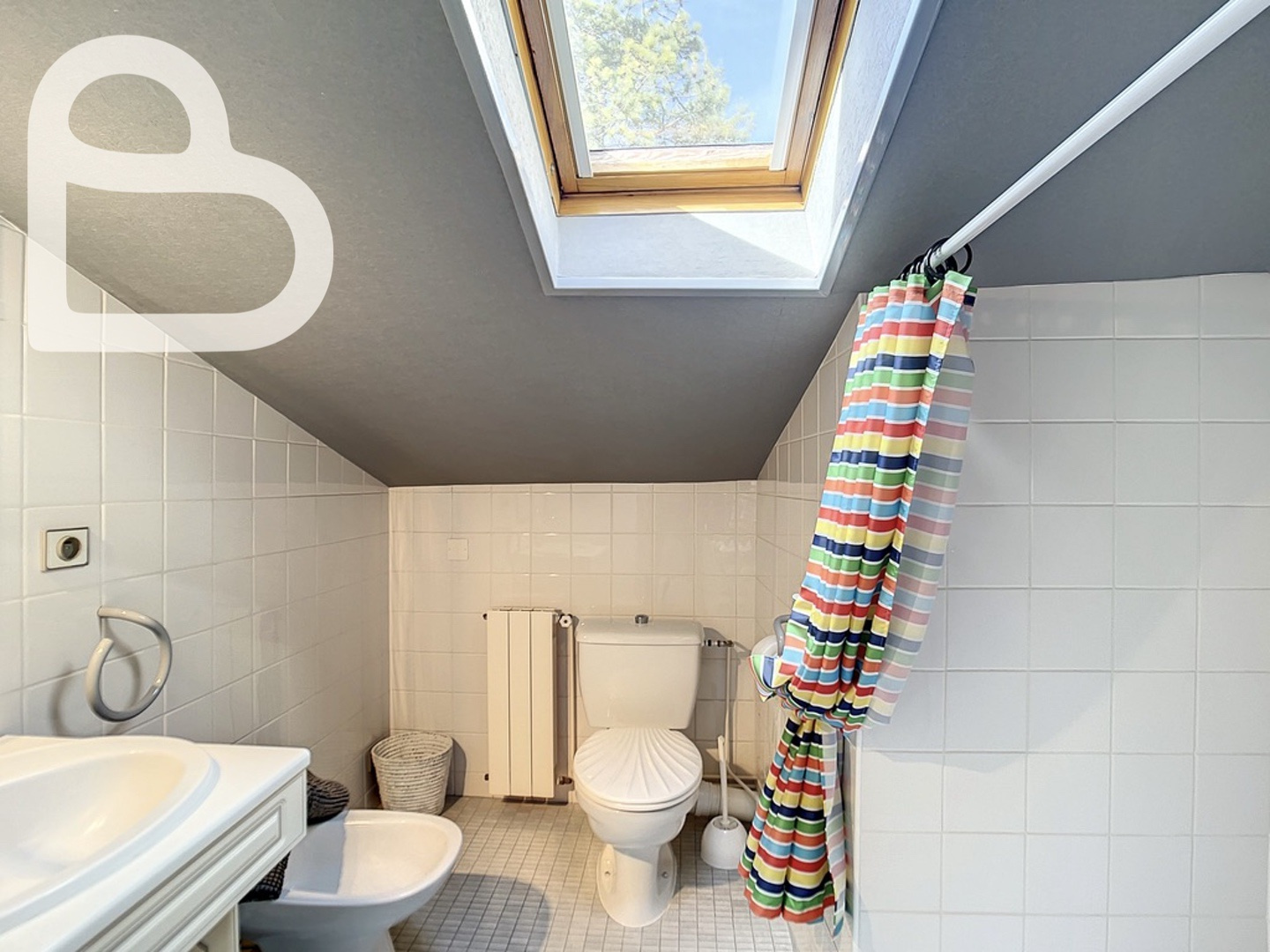 L'étage mansardé ayant une surface de 53m2 abrite un logement indépendant, accessible de l'intérieur et directement de l'extérieur par une porte située à l'arrière de la maison. Il est composé d'un salon, de deux chambres, des toilettes et d'une salle de bains.
