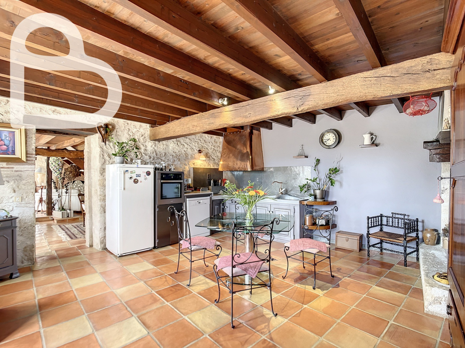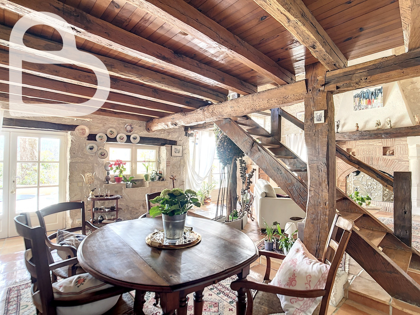 En département du Lot-et-Garonne, sur un terrain de plus d’un hectare, entouré de prairies et de bois, se trouve cette propriété unique en son genre. Cette propriété est située dans un havre de paix et de tranquillité, à seulement 10 minutes de Villeneuve-sur-Lot, de ses centres commerciaux et de son hôpital. Le jardin soigneusement entretenu et I'état impeccable des bâtiments vous séduiront sans aucun doute. Mais c'est le magnifique mur de fond du salon, taillé dans la roche, qui rend cette propriété vraiment unique.
