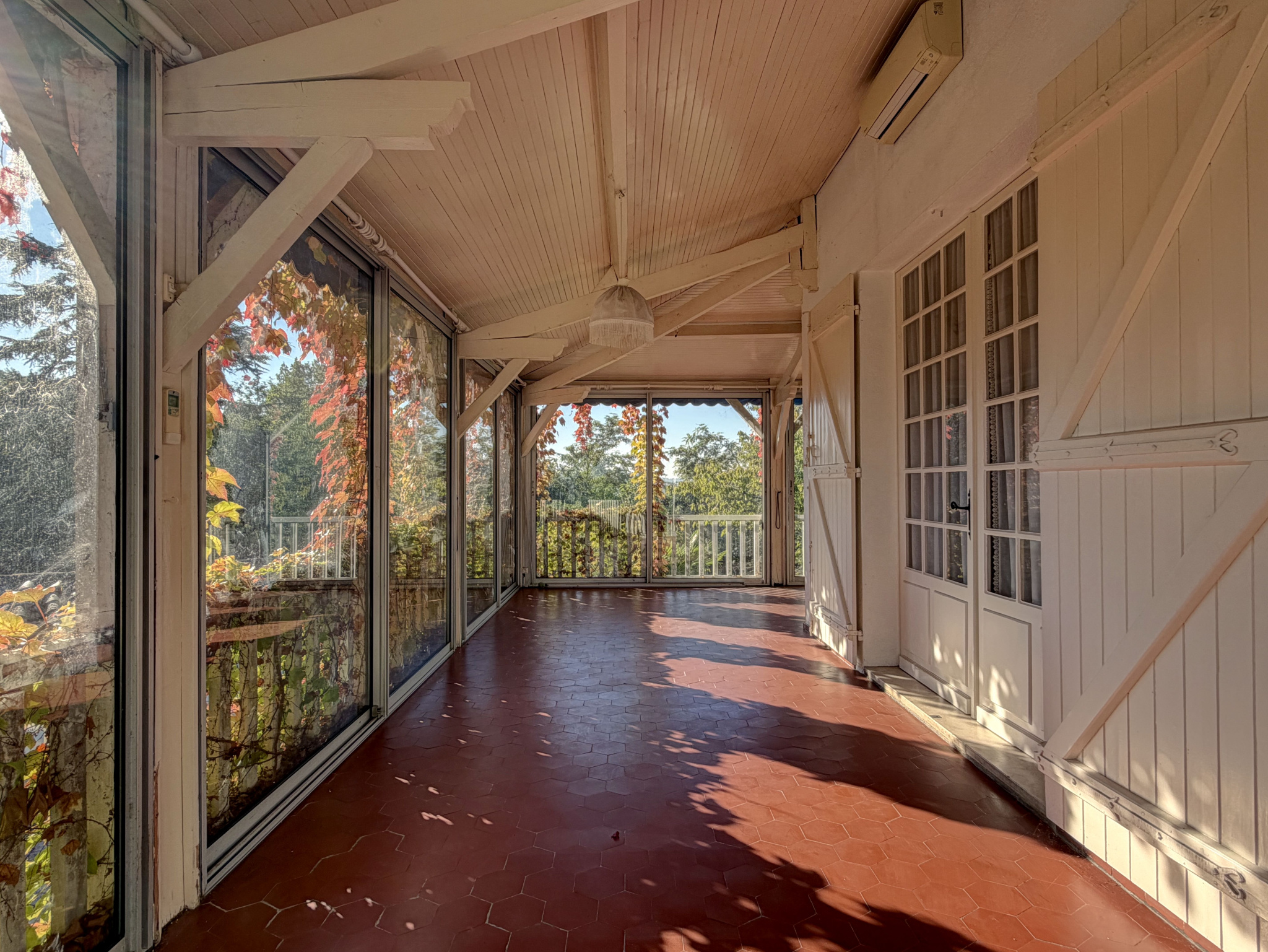 Elle se compose à l'étage, d’un vaste salon de plus de 51 m² avec cheminée, d’une cuisine indépendante de 12 m², ainsi qu’une véranda chauffée et climatisée de plus de 50 m². L’espace nuit dispose de quatre chambres dont une avec point d’eau (12,11,13,12 m²) , d’une salle de bains, d’une salle d’eau, de toilettes indépendants et placard.