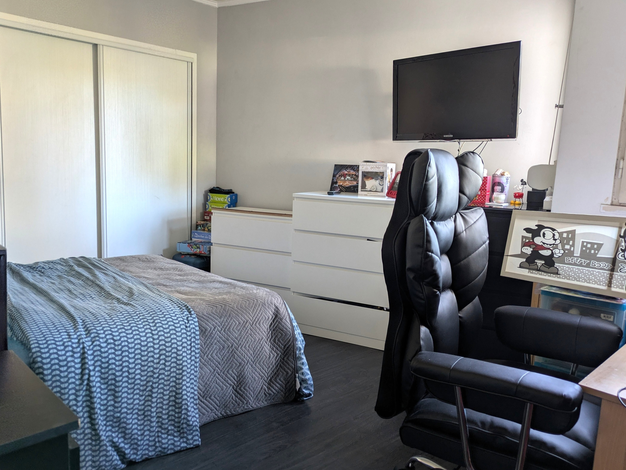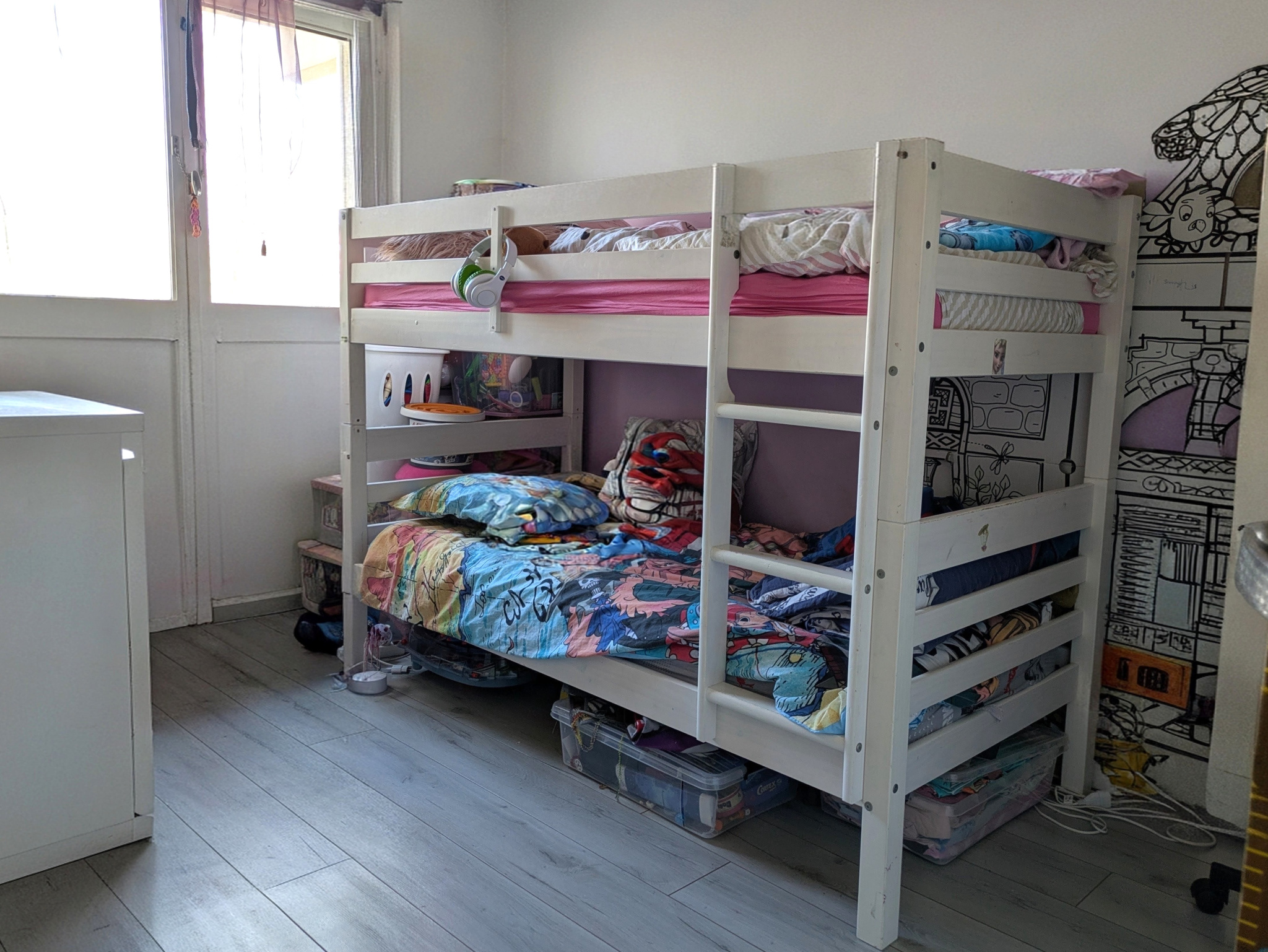 Description sommaire : pièce à vivre donnant sur un balcon - Dégagement avec grand placard - Deux chambres - Salle de bains - WC indépendant