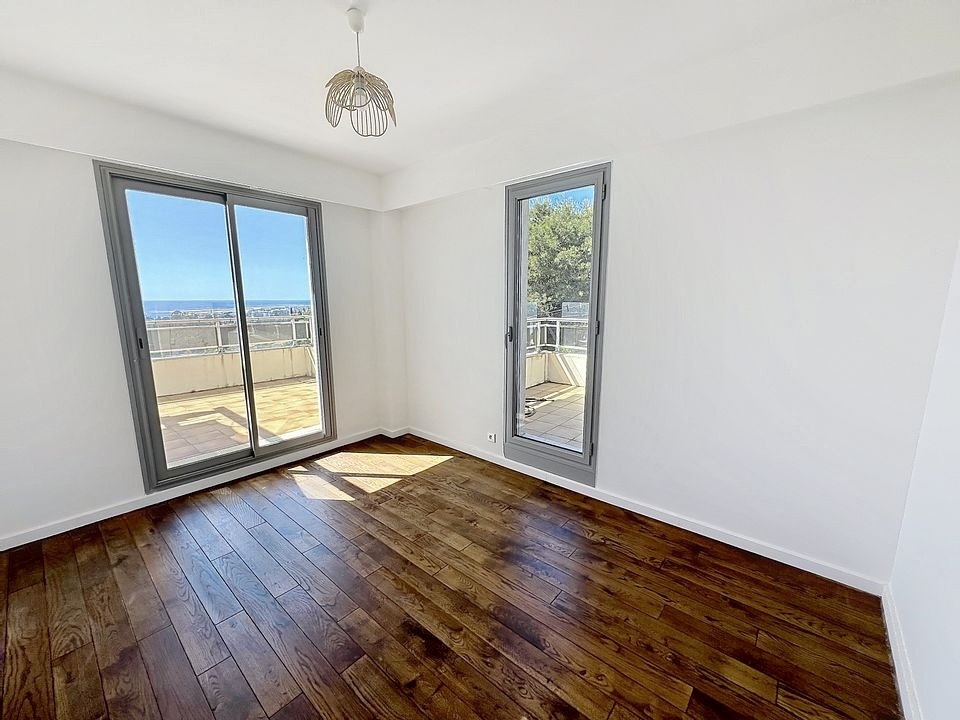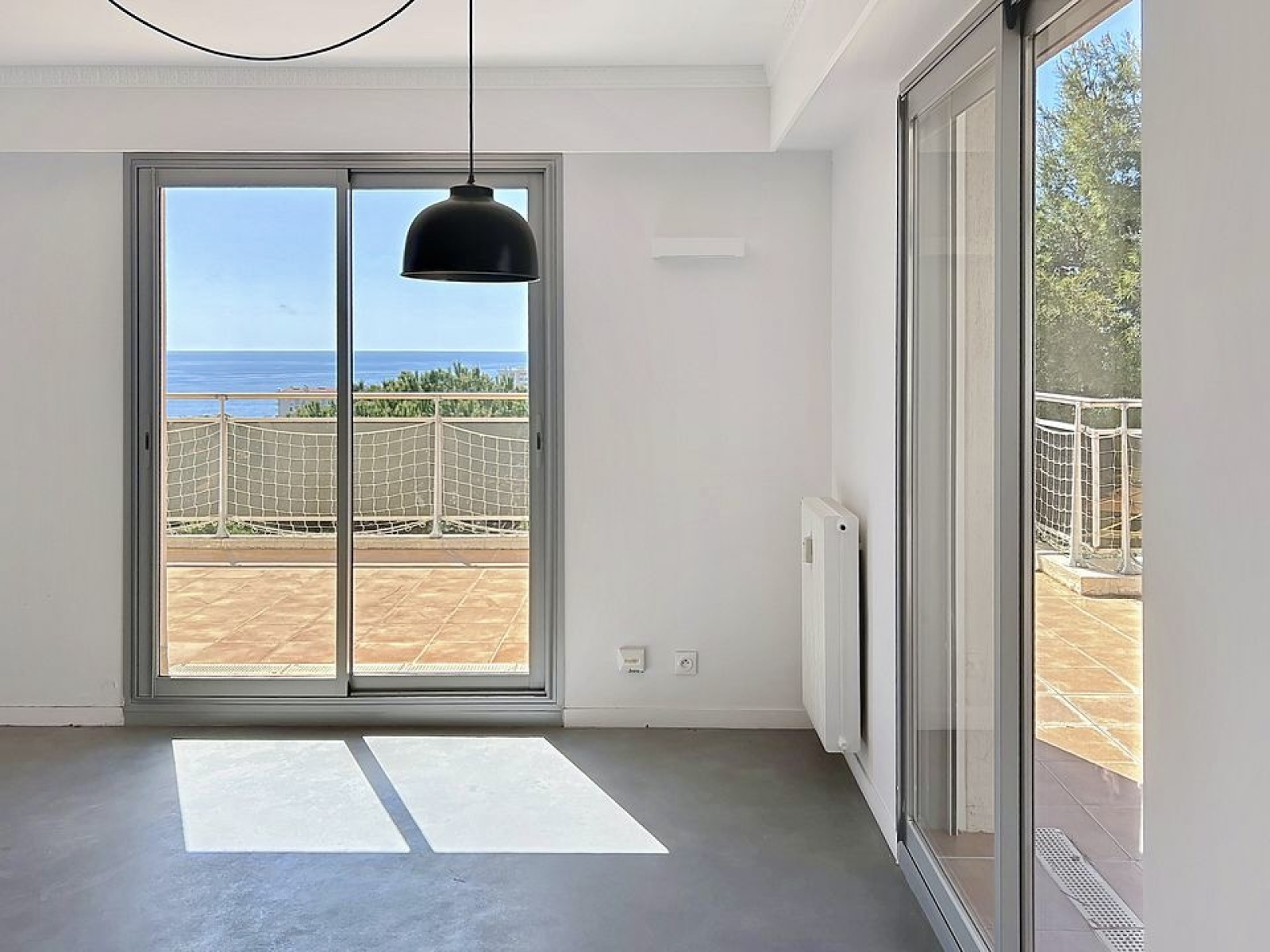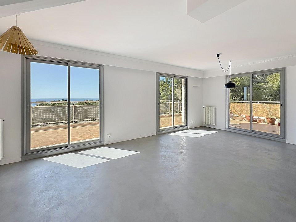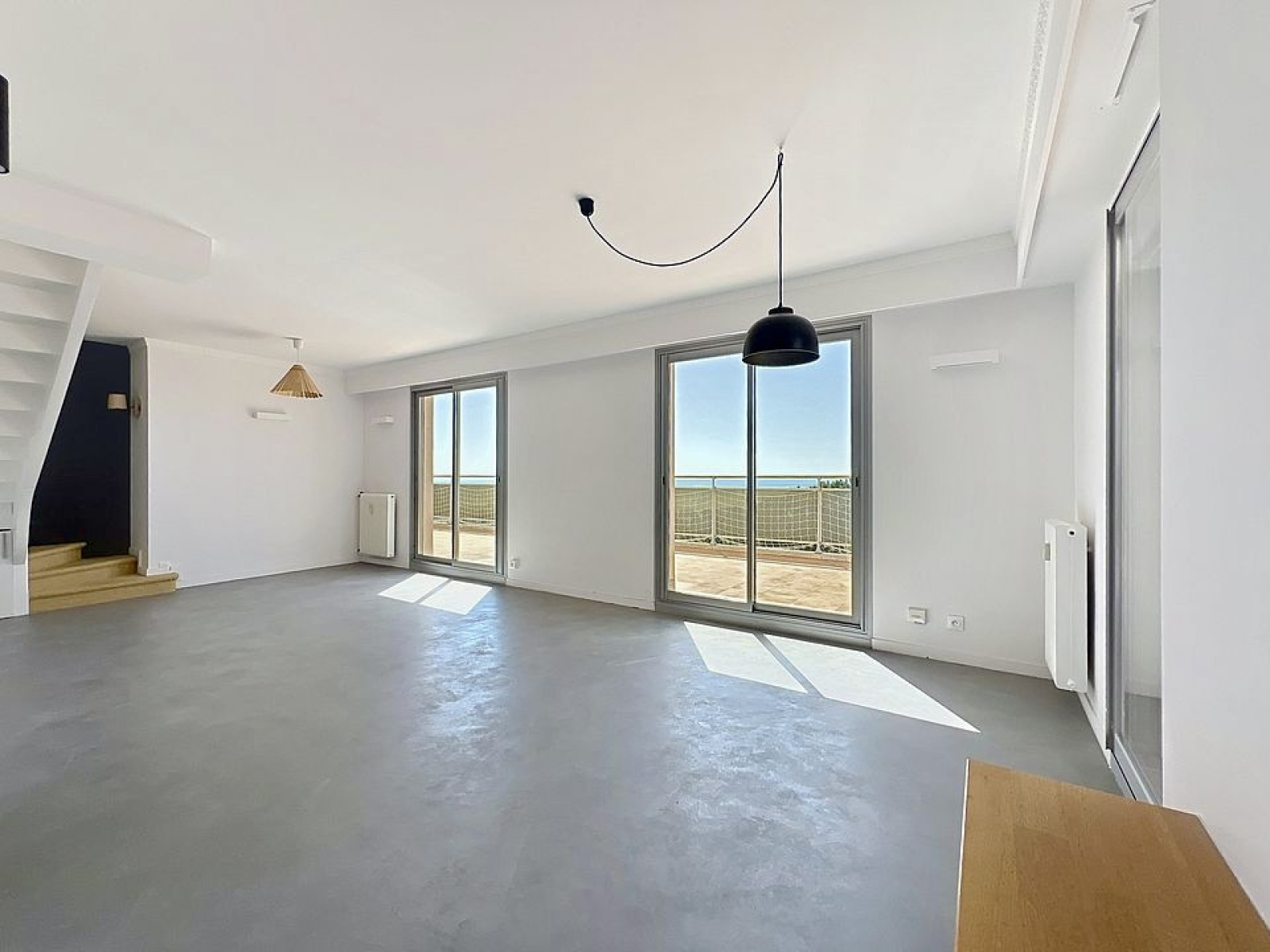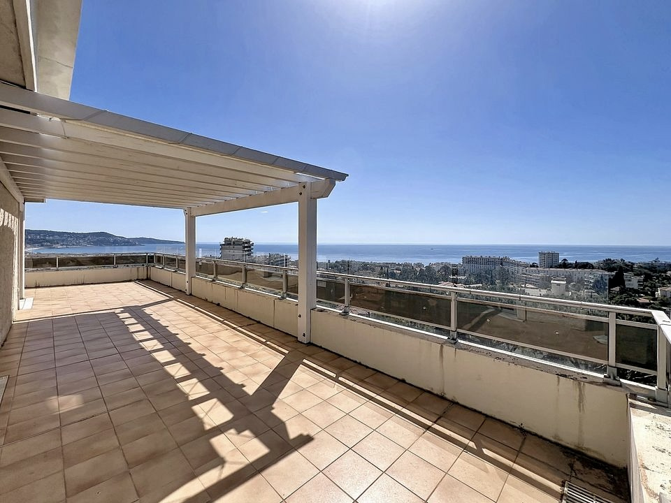 Occupant le DERNIER ETAGE, ce duplex de 123 m² séduit par ses volumes, sa luminosité et sa situation dominante offrant VUE MER panoramique remarquable, s’étendant de Saint-Jean-Cap-Ferrat jusqu’au Cap d’Antibes.