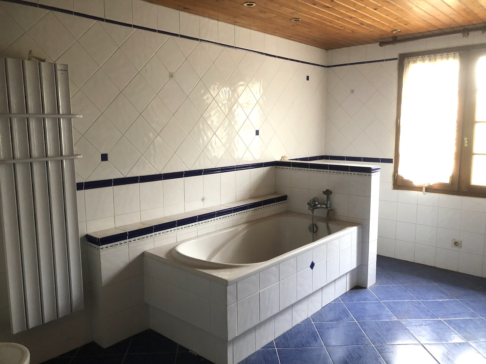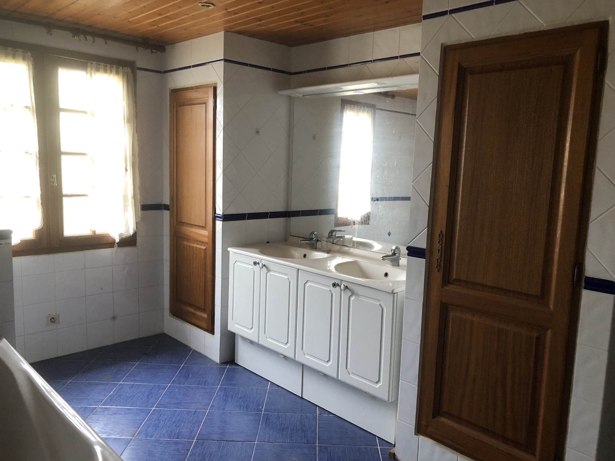 A l'étage, vous découvrirez une magnifique chambre avec espace bureau et rangements de 32m2, deux autres chambres spacieuses avec placards et une grande salle de bains avec wc.