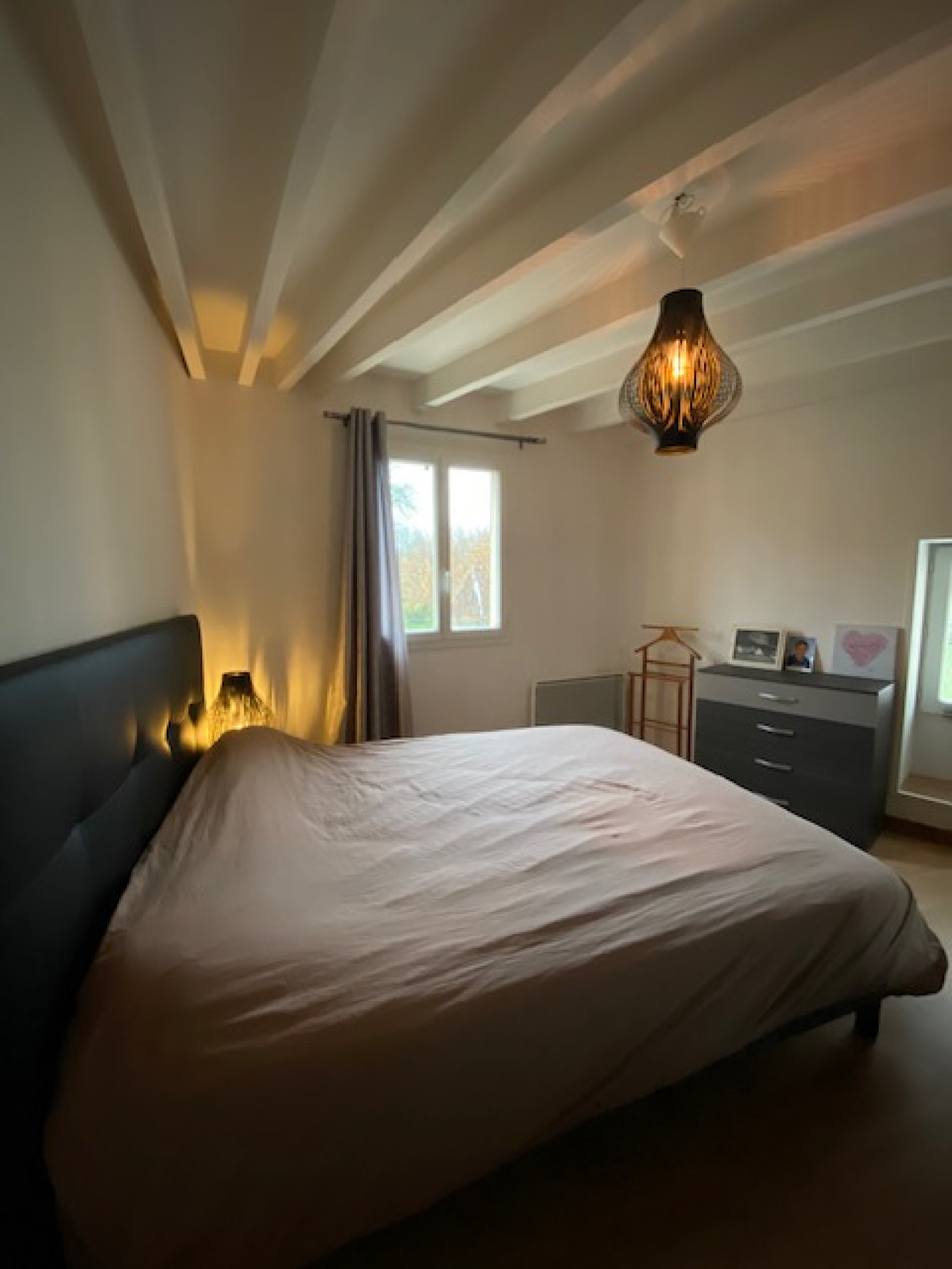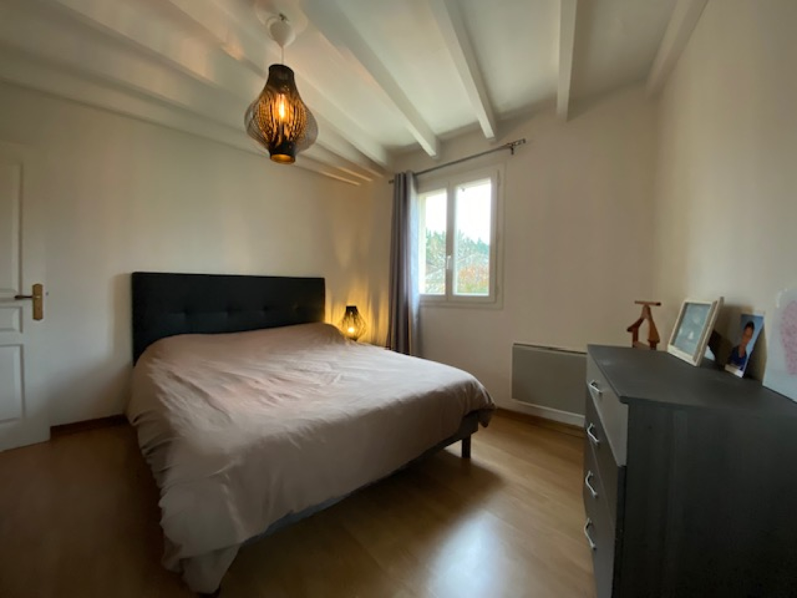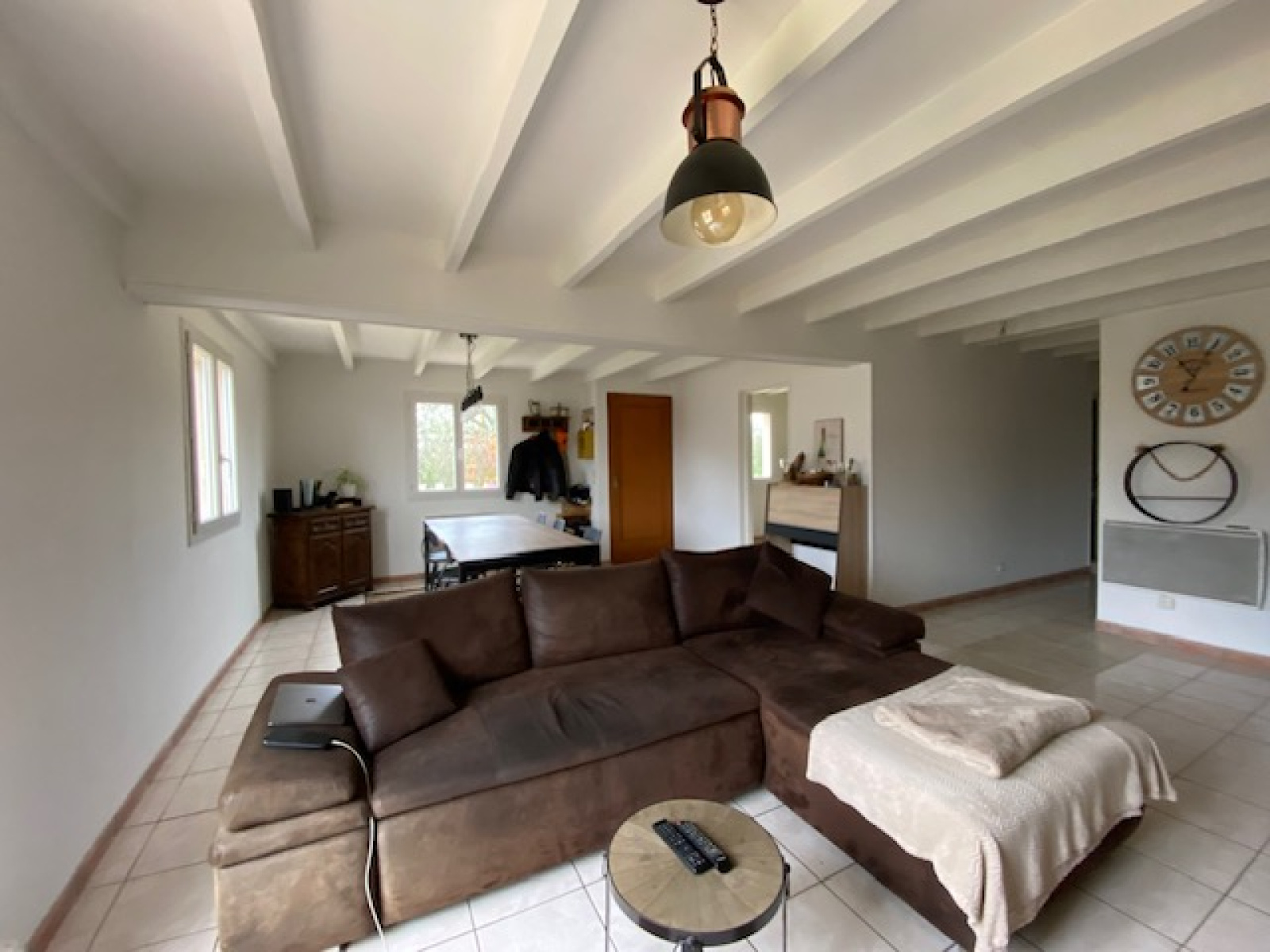Au sol carrelage, équipée d'une cheminée insert.