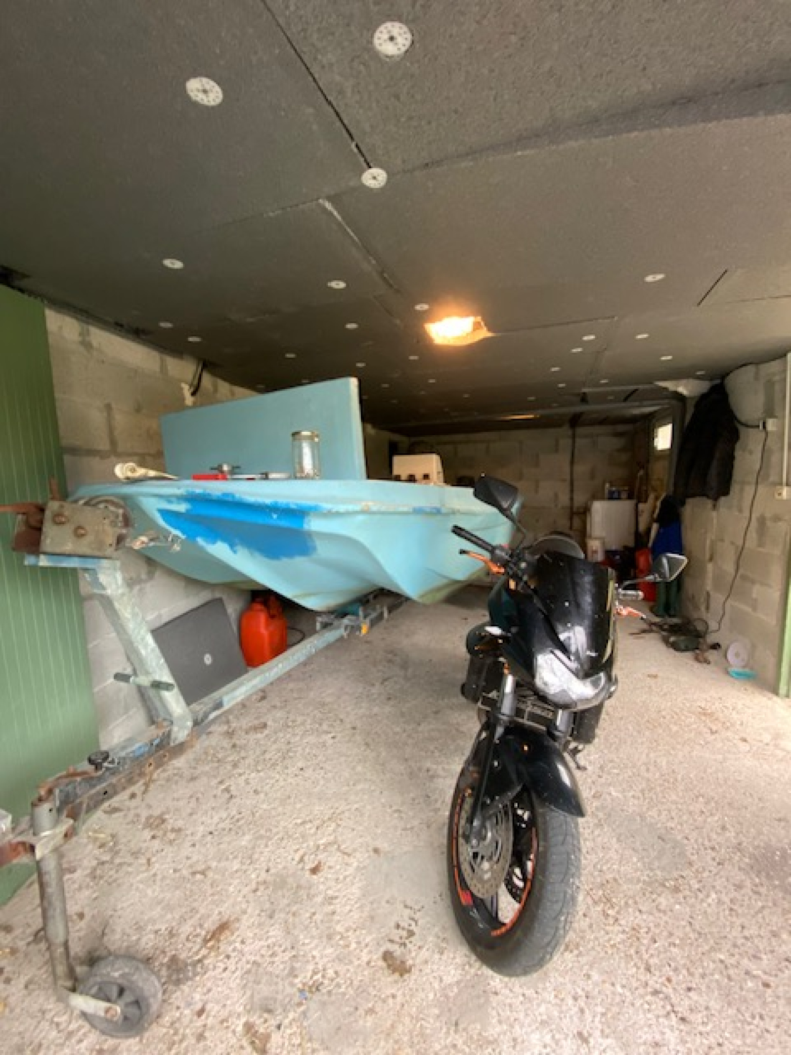 Au sol béton mur parpaings et moellons, possibilité de garer un véhicule et nombreux rangements