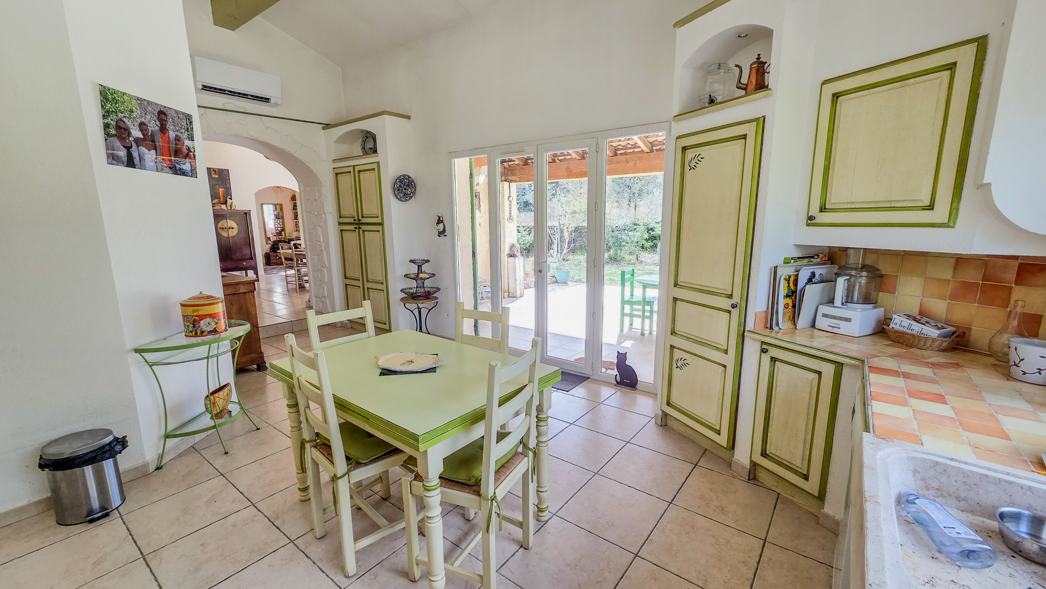 Le salon-séjour, cœur de la maison, est baigné de lumière et s’ouvre sur une magnifique terrasse ombragée, parfaite pour vos moments de détente. La cuisine, elle aussi exposée sud-ouest, est un véritable havre de paix avec vue sur le jardin, et s’ouvre directement sur la terrasse grâce à ses portes-fenêtres. Un cellier attenant ajoute une touche de praticité.