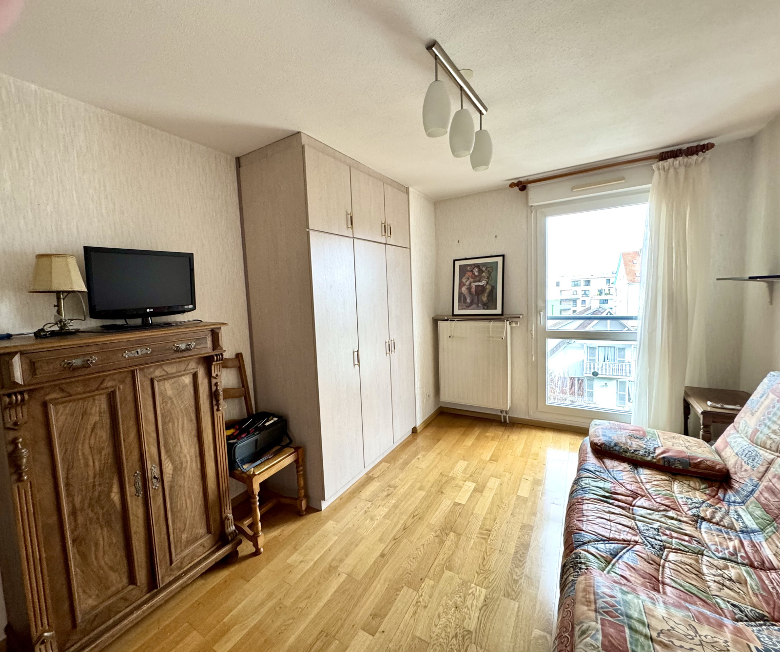 À découvrir sans tarder ! Au sein d'une jolie copropriété bien entretenue - Beau 3 pièces au cœur de Riedisheim Idéalement situé au pied des commerces dans un secteur recherché, cet appartement se compose d’une entrée, d’un séjour lumineux climatisé avec accès balcon, de deux chambres, d’une cuisine équipée, d’une salle de bain et d'un WC séparé. Nombreux rangements.