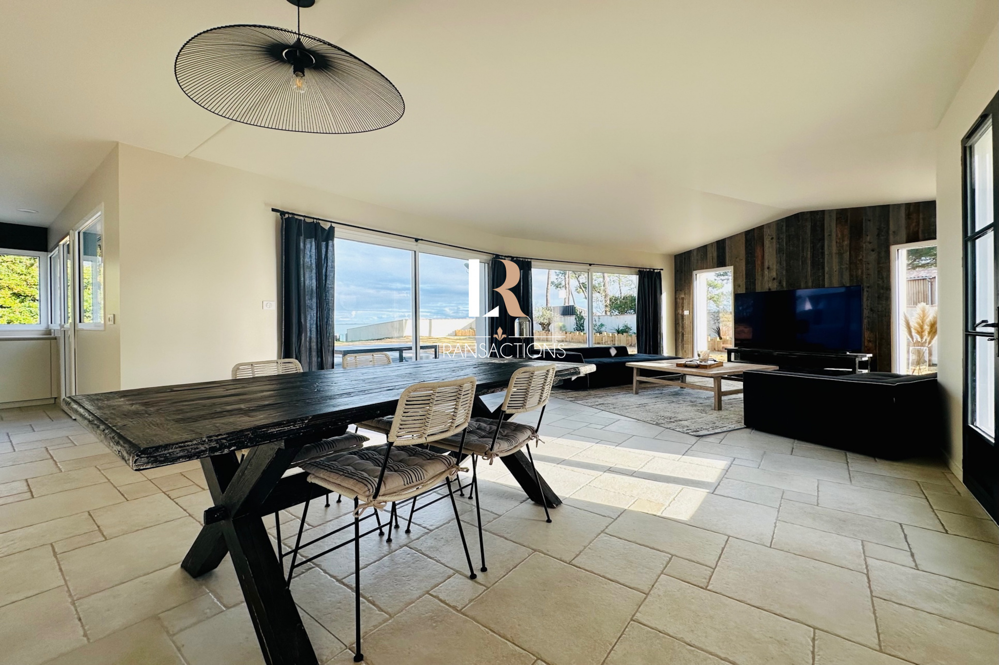 Sur la commune de Rivedoux, Rare propriété avec accès privé à l’océan sur 2350m2 de terrain. Cette propriété dispose d’une première maison de plain pied d'environ 180m². Une jolie pièce de vie lumineuse grâce à sa triple exposition, vous offre une vue imprenable sur ses extérieurs et le Perthuis Breton. Une cuisine neuve et entièrement aménagée avec son îlot très convivial donne accès à la terrasse et son spa de nage.Côté nuit, vous y trouverez deux espaces distincts. Le premier avec une jolie suite parentale, et une seconde chambre avec sa salle d’eau privative. Les deux donnent sur une seconde terrasse plus intimiste. Le second espace nuit propose deux belles chambres et une salle d’eau.