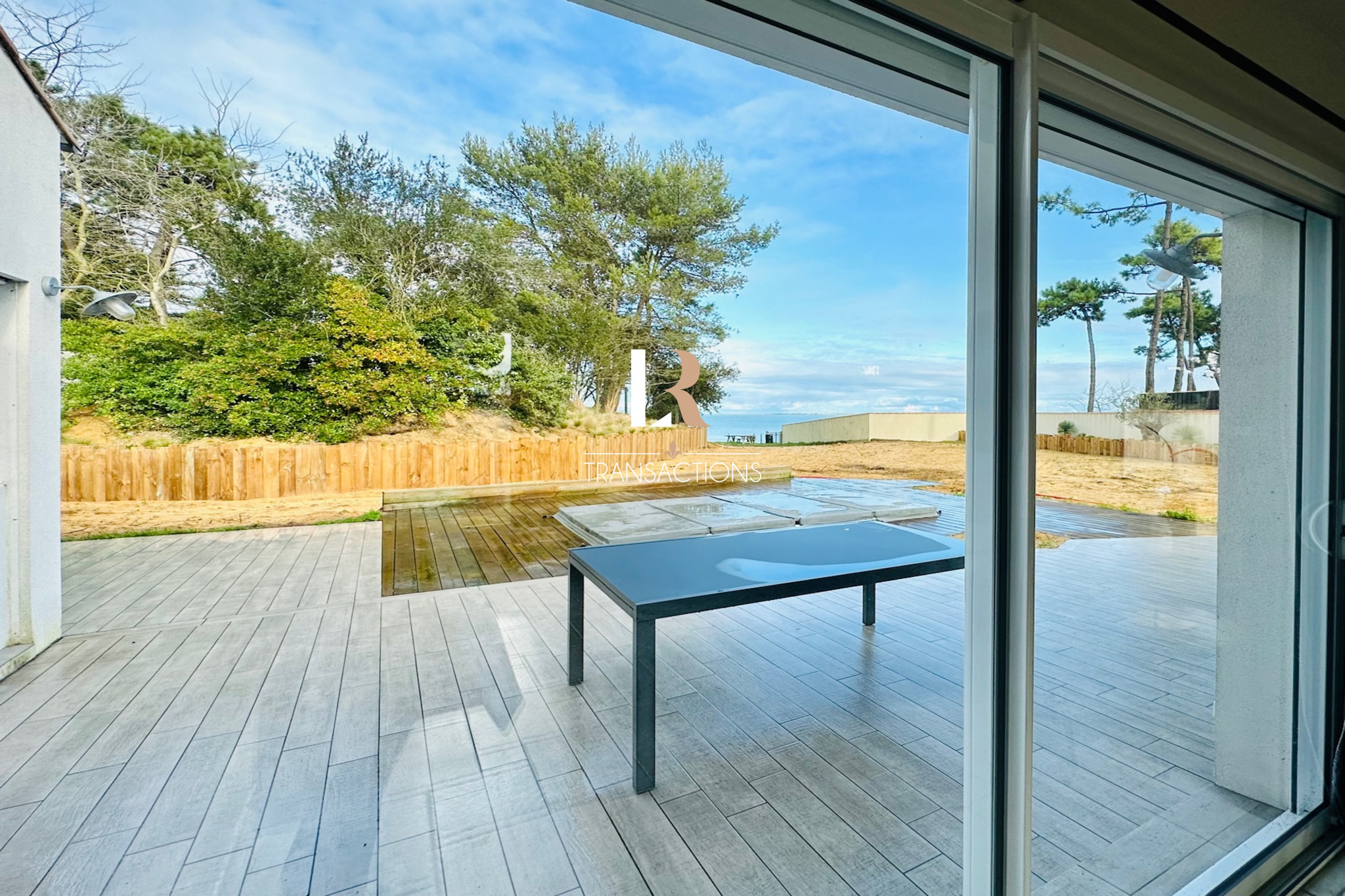 Le magnifique terrain tout juste aménagé et paysagé. Ce dernier vous offre de nombreux stationnements et se prolonge jusqu’à l’océan en vous proposant un accès privatif à la mer. Vous pourrez profiter des magnifiques soirées d’été aux bruits des vagues.